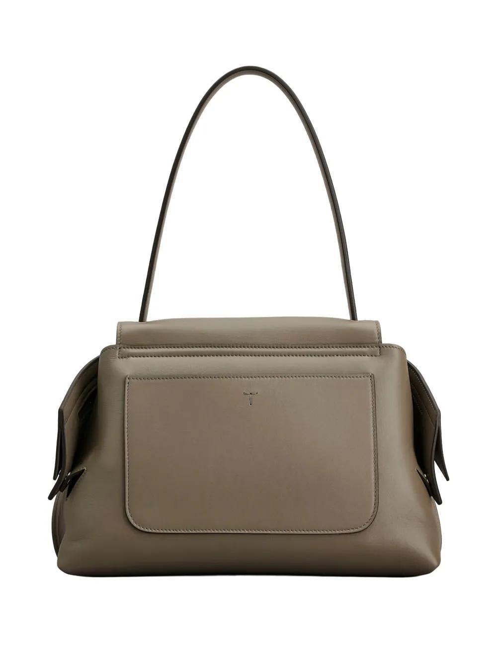 grey leather single shoulder strap foldover top main compartment