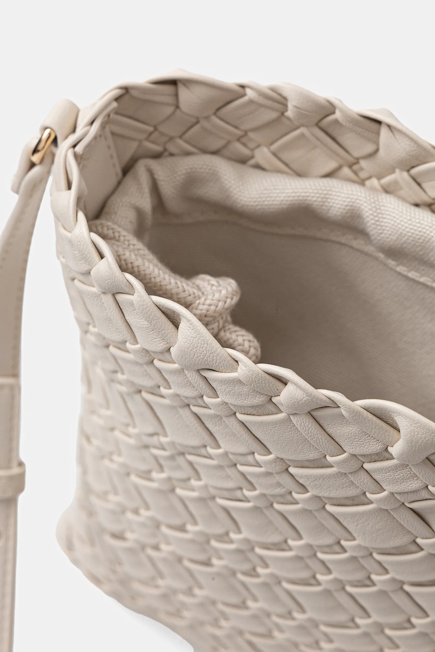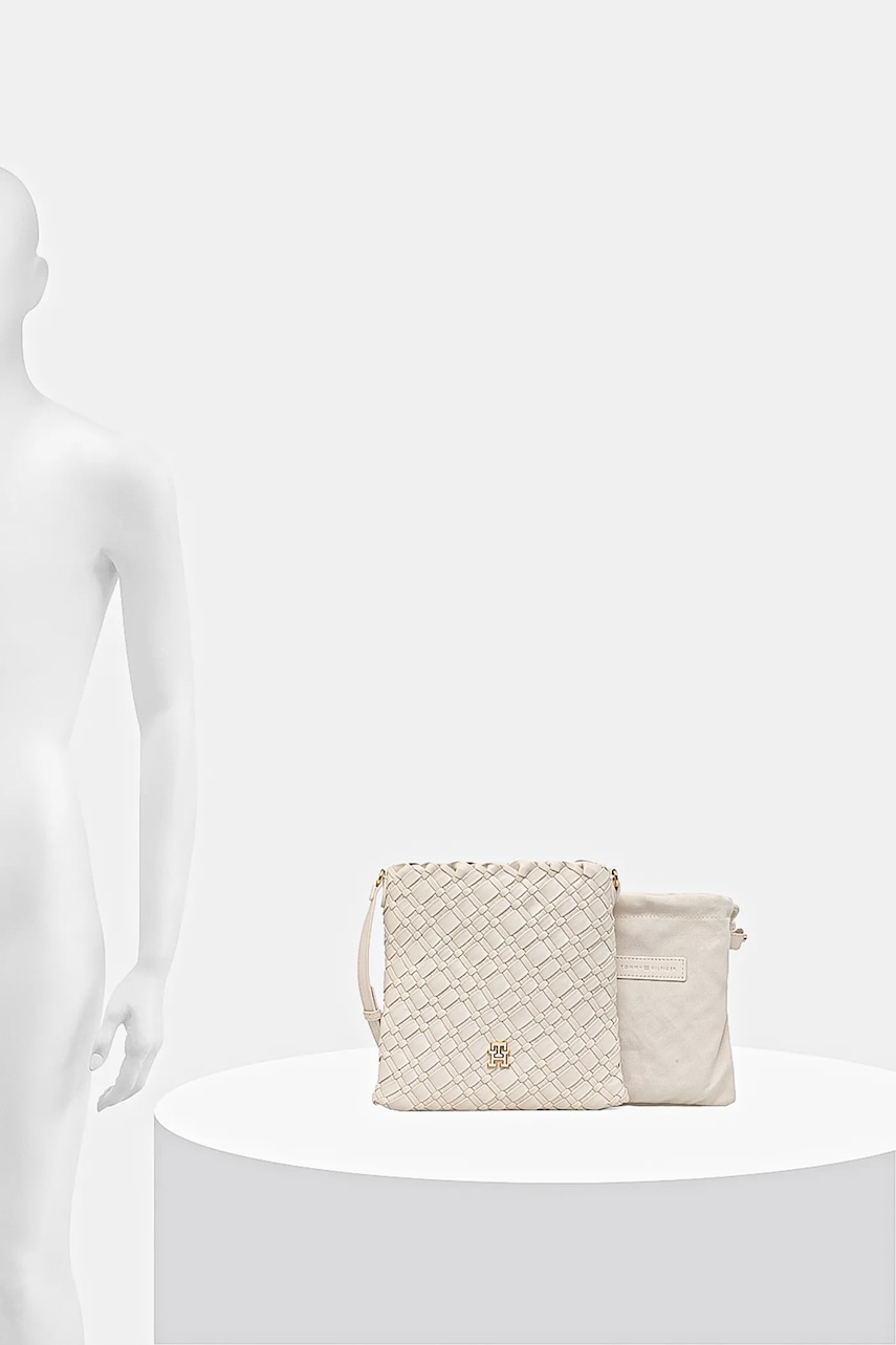 - Wyjmowana komora, ściągana troczkami. - Nieodpinany, regulowany pasek umożliwia indywidualne dopasowanie. - Model wykonany z plecionego materiału. - Nie mieści formatu A4. - Długość minimalna paska: 114 cm. - Długość maksymalna paska: 128 cm. - Głębokość: 3 cm. - Wysokość: 22 cm. - Szerokość u podstawy: 22 cm.