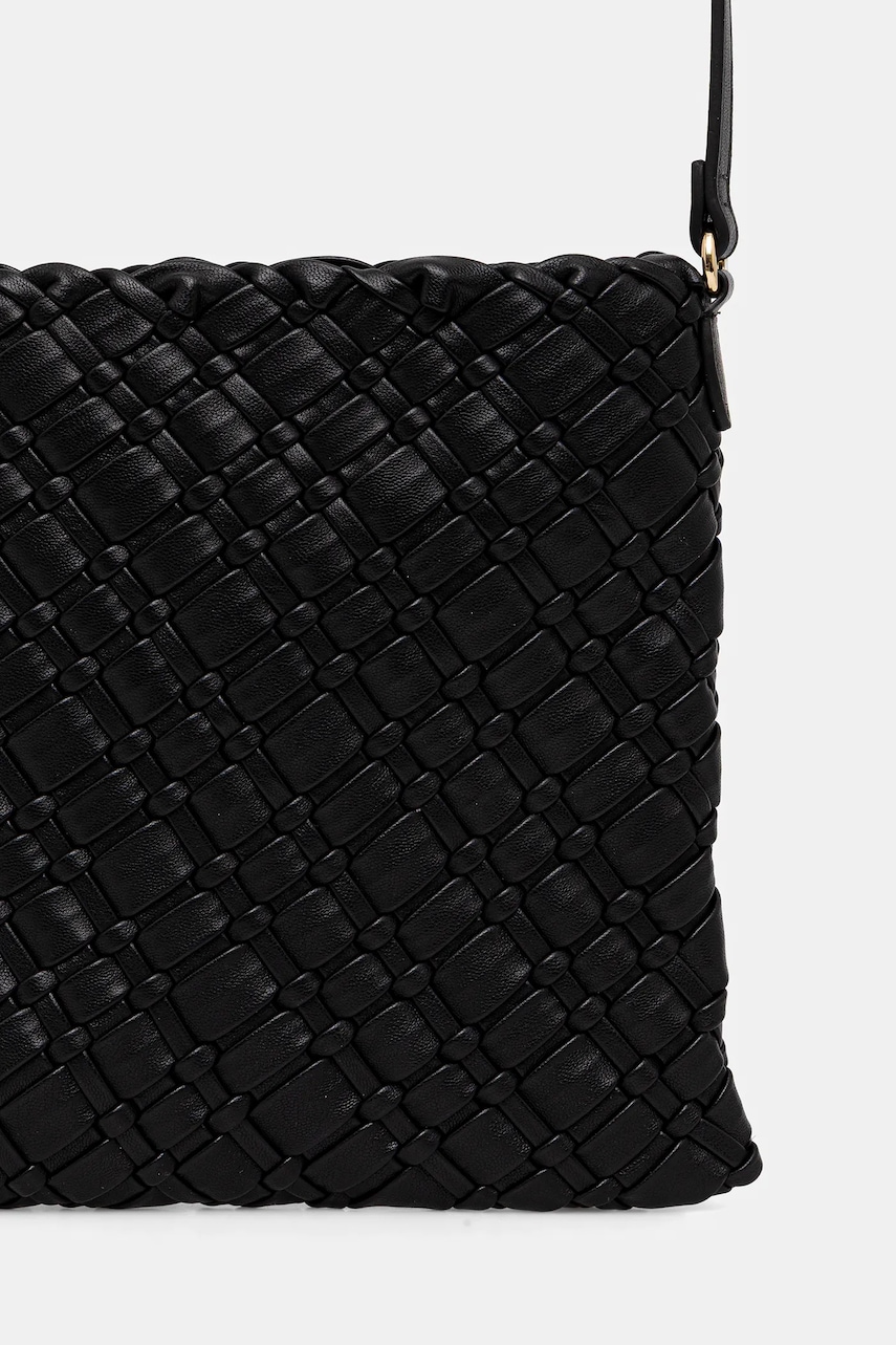 - Wyjmowana komora, ściągana troczkami. - Nieodpinany, regulowany pasek umożliwia indywidualne dopasowanie. - Model wykonany z plecionego materiału. - Nie mieści formatu A4. - Długość minimalna paska: 114 cm. - Długość maksymalna paska: 128 cm. - Głębokość: 3 cm. - Wysokość: 22 cm. - Szerokość u podstawy: 22 cm.