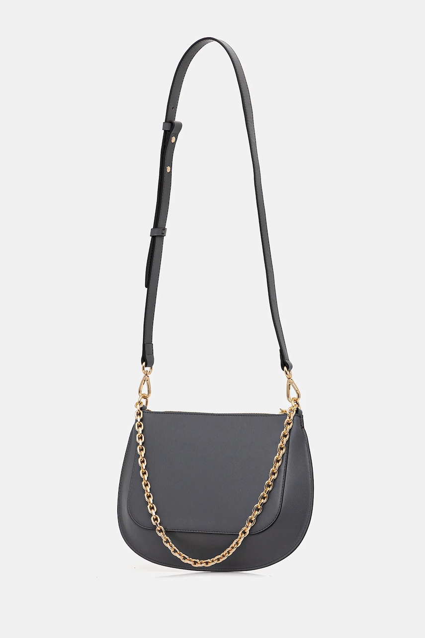- Komora zapinana na suwak. - Nie mieści formatu A4. - Posiada uchwyt i odpinany pasek z regulacją. - Kieszonka wewnętrzna zapinana na suwak. - Model z podszewką. - Dołączony tekstylny worek zabezpiecza produkt przed kurzem. - Długość minimalna paska: 91 cm. - Długość maksymalna paska: 105 cm. - Długość uchwytu: 55 cm. - Wysokość: 17 cm. - Szerokość u podstawy: 30 cm.