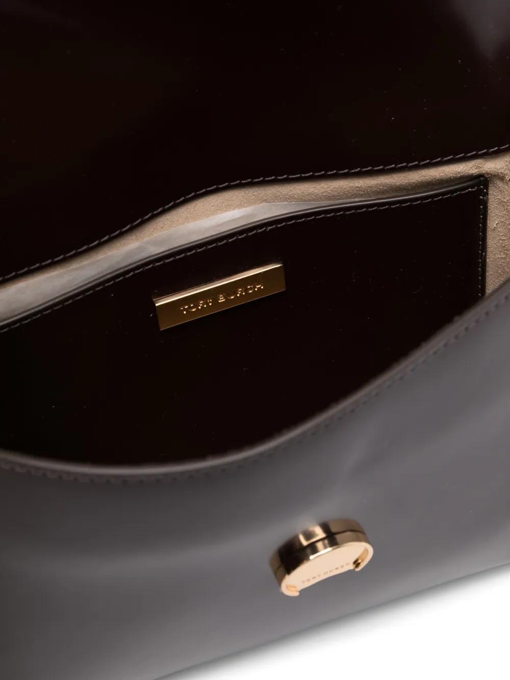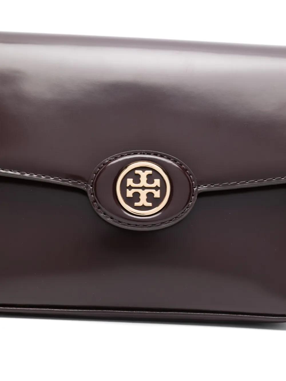 bordeaux red calf leather patent finish foldover top with magnetic fastening adjustable shoulder strap signature Double T motif main compartment internal slip pocket full lining