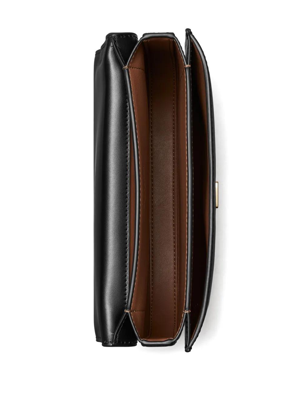black calf leather gold-tone hardware signature Double T motif single shoulder strap foldover top main compartment internal zip-fastening pocket
