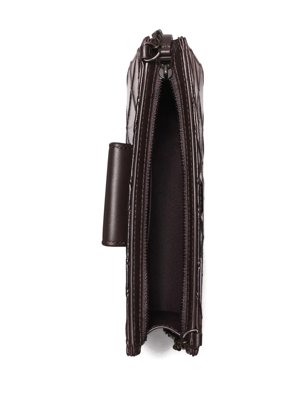 deep burgundy patent finish quilted design chain shoulder strap logo detail This piece comes complete with a protective dust bag.