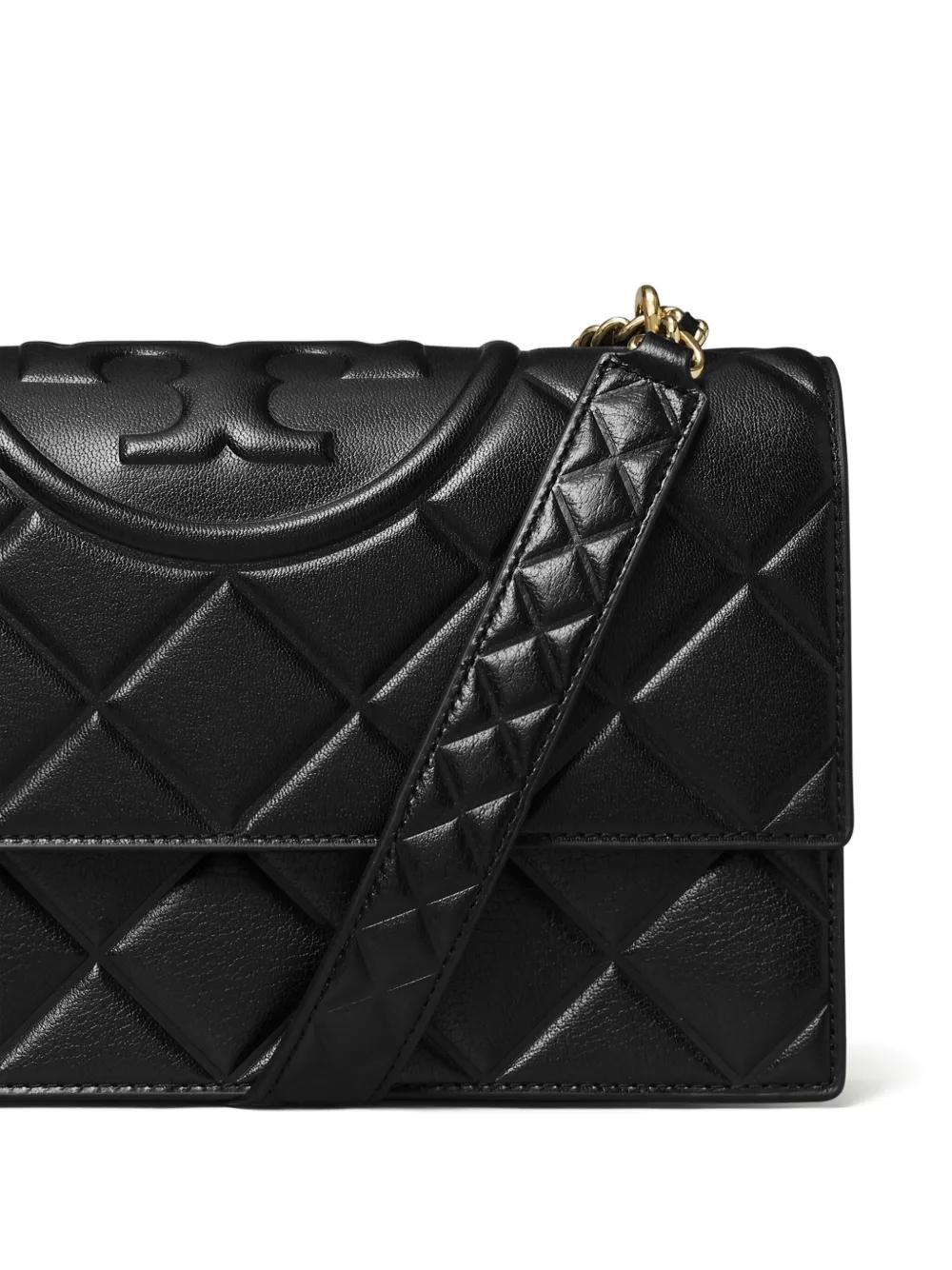 black leather foldover top with magnetic fastening diamond quilting signature Double T motif leather and chain-link shoulder strap main compartment internal zip-fastening pockets internal slip pocket