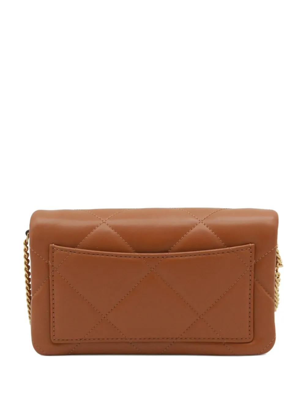 brown quilted pattern Double T hardware chain strap flap closure leather material