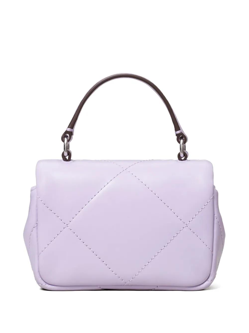 lilac purple foldover top with magnetic fastening single flat top handle detachable chain-link shoulder strap signature TB monogram plaque