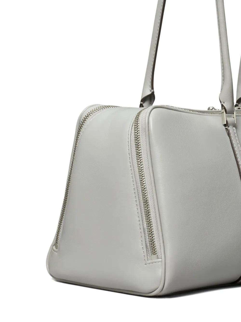 light grey leather two long top handles two-way zip closure logo detail rectangular shape