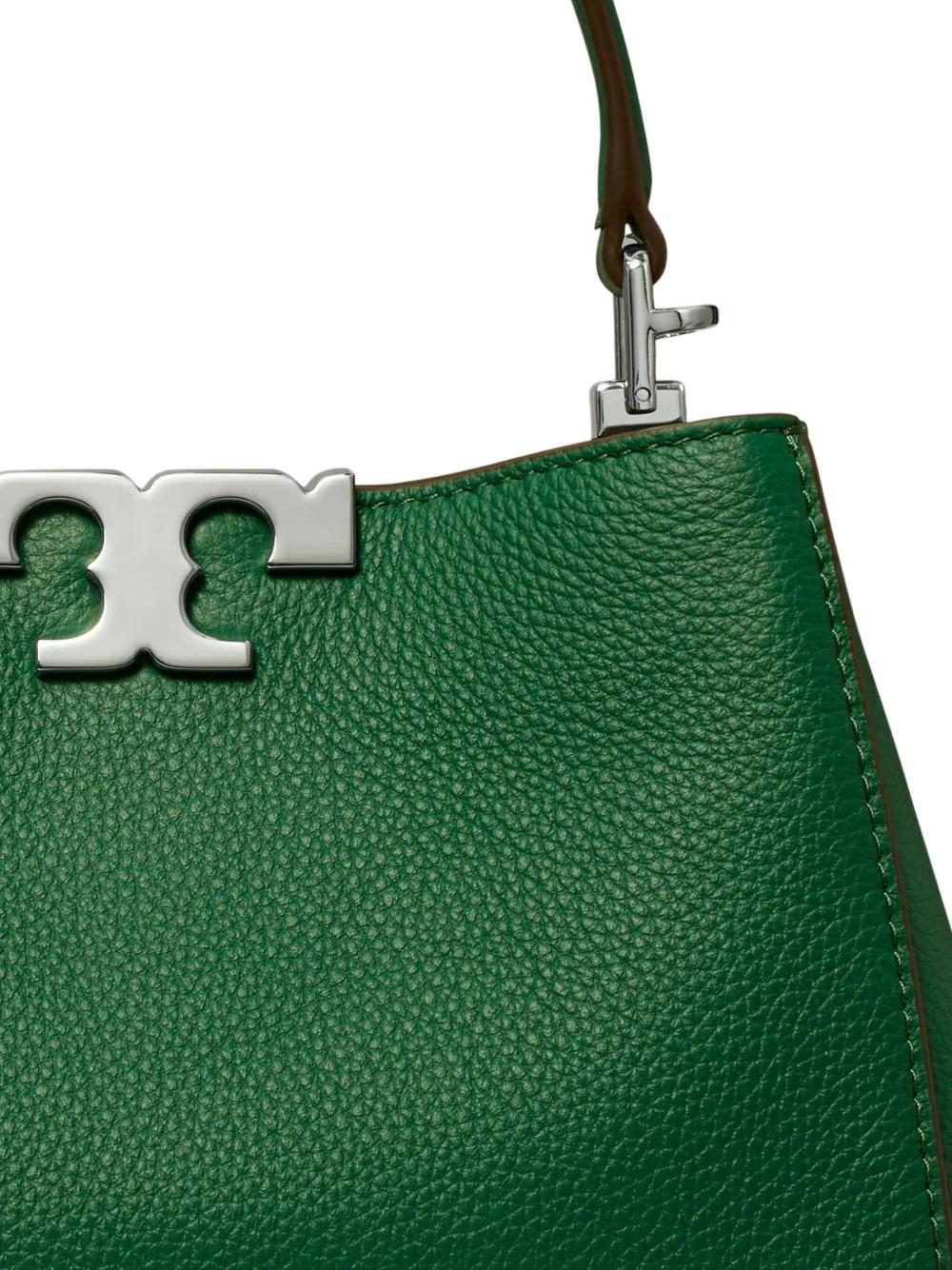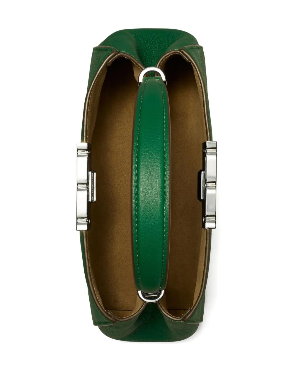 green leather top handle detachable shoulder strap logo detail silver-tone hardware