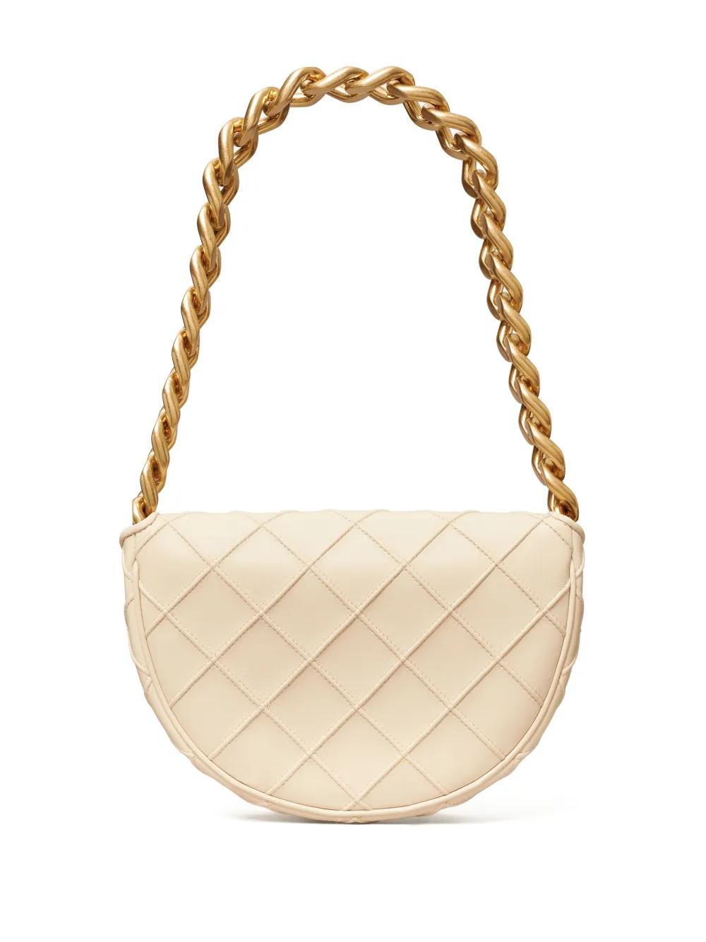cream white nappa leather diamond quilting foldover top with magnetic fastening adjustable detachable shoulder strap chain-link shoulder strap pintuck detailing signature Double T motif main compartment cotton lining internal card slots This piece comes complete with a protective dust bag.