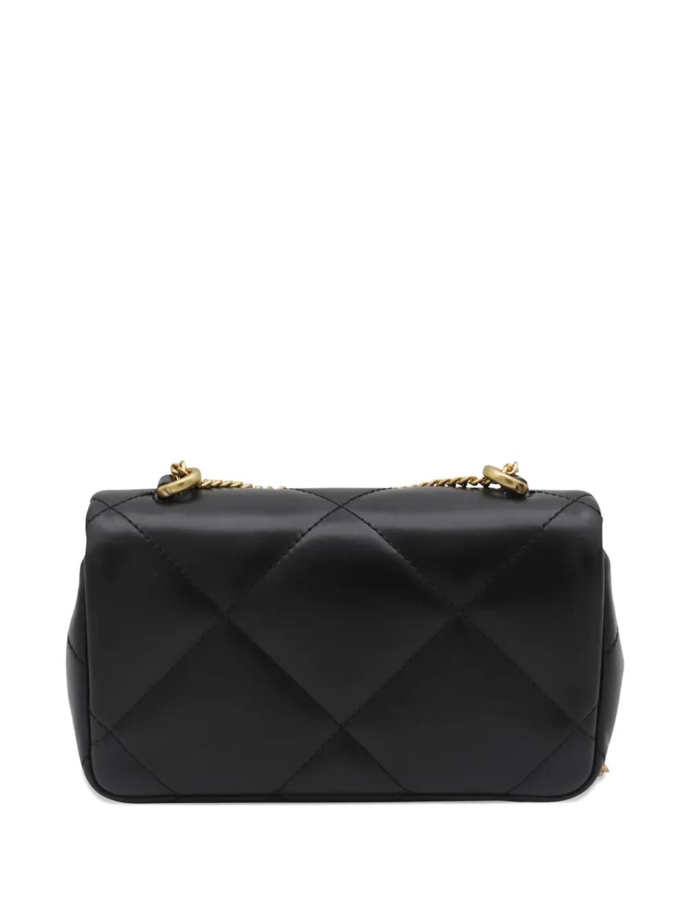 black quilted gold-tone hardware chain shoulder strap logo plaque top zip fastening