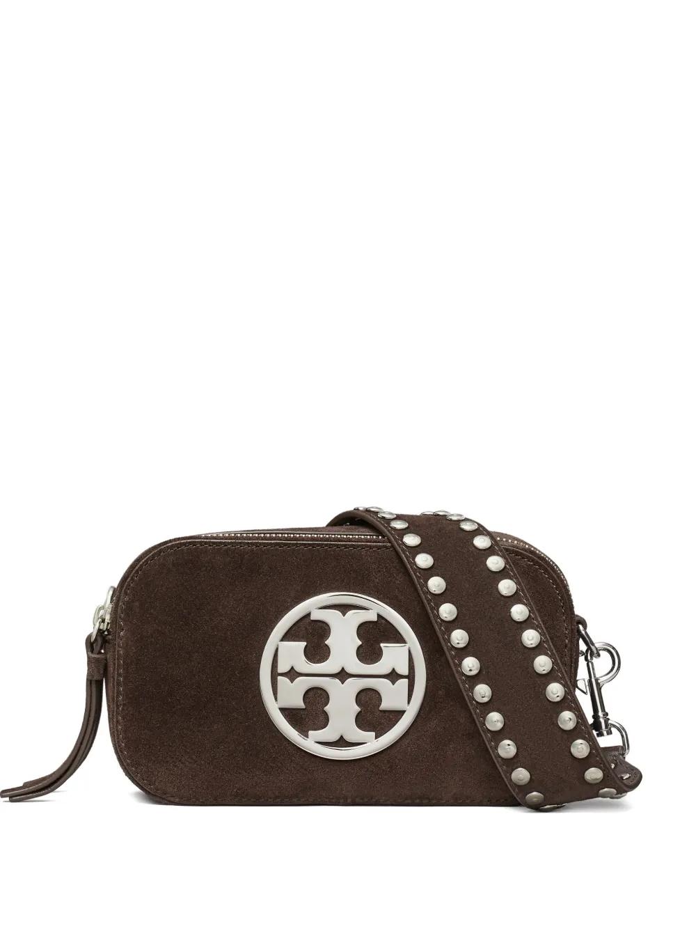 Tory Burch mini Miller logo-studded suede crossbody bag - Brown