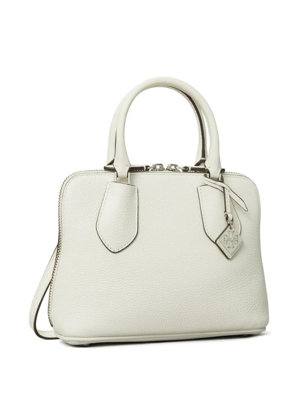 white leather grained texture logo charm silver-tone hardware two-way zip fastening adjustable detachable shoulder strap two rolled top handles main compartment metal feet