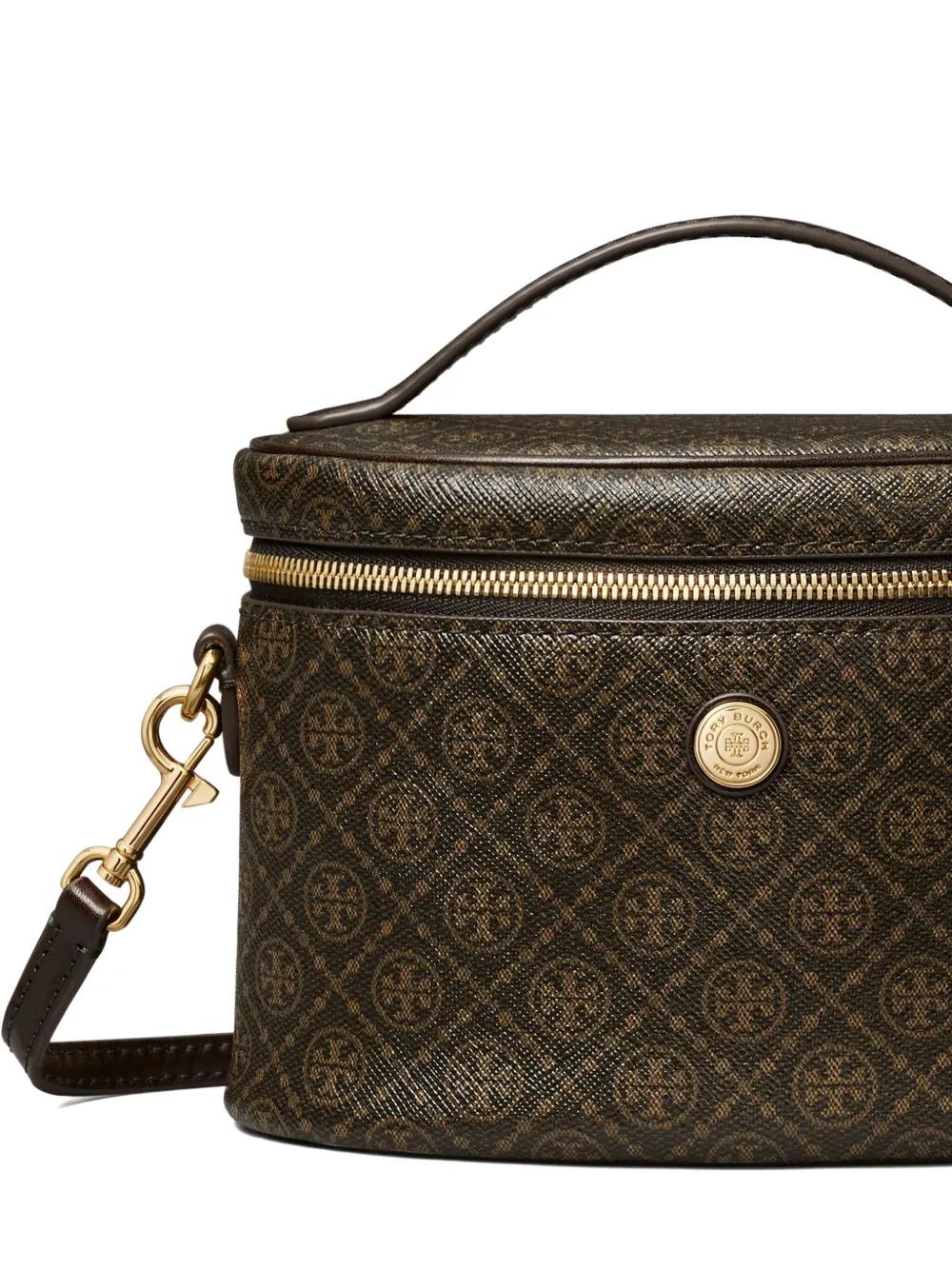 brown monogram pattern top handle zip closure detachable strap gold-tone hardware
