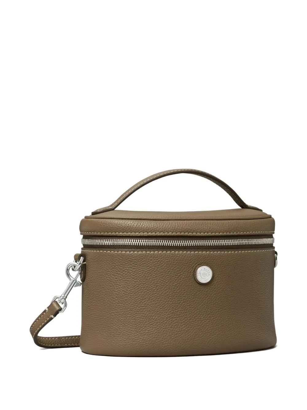 brown top handle detachable shoulder strap zip fastening silver-tone hardware pebble grain leather