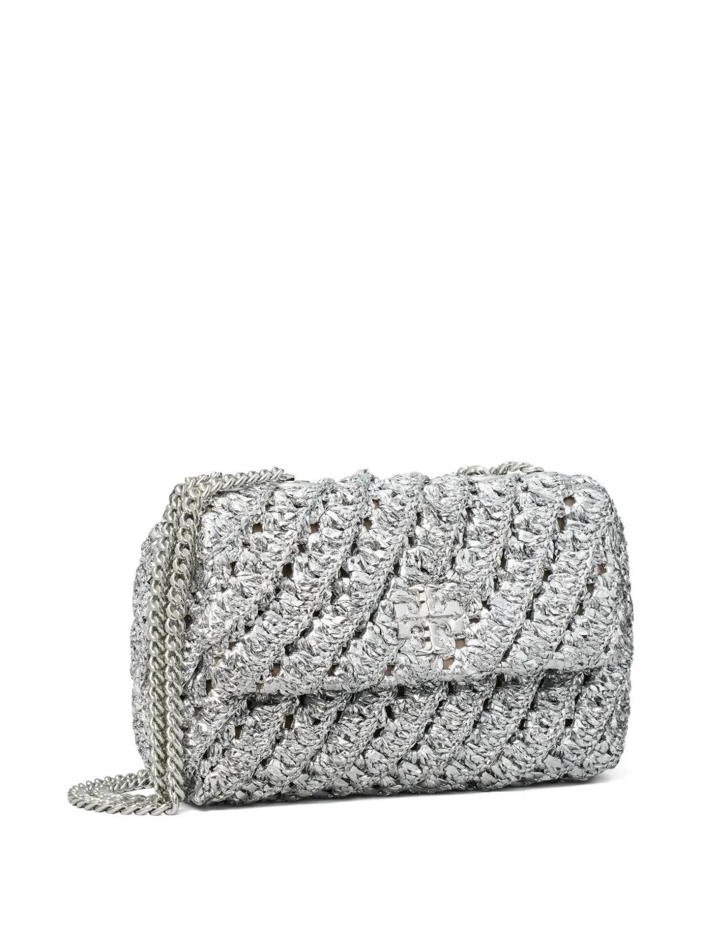 silver-tone woven design chain shoulder strap logo detail flap closure