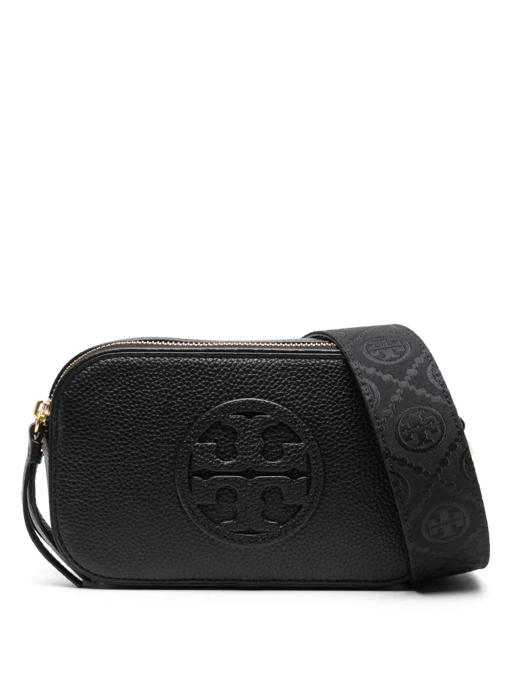 black calf leather grained texture signature Double T motif logo patch to the front top zip fastening adjustable detachable logo-jacquard shoulder strap partitioned compartment embossed internal logo internal slip pocket suede lining gold-tone hardware This piece comes complete with a protective dust bag.