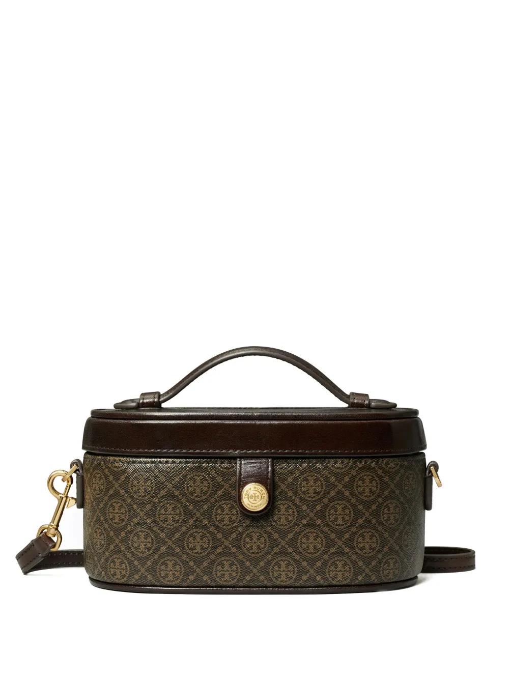 coffee brown press-stud fastening monogram jacquard detachable shoulder strap single top handle