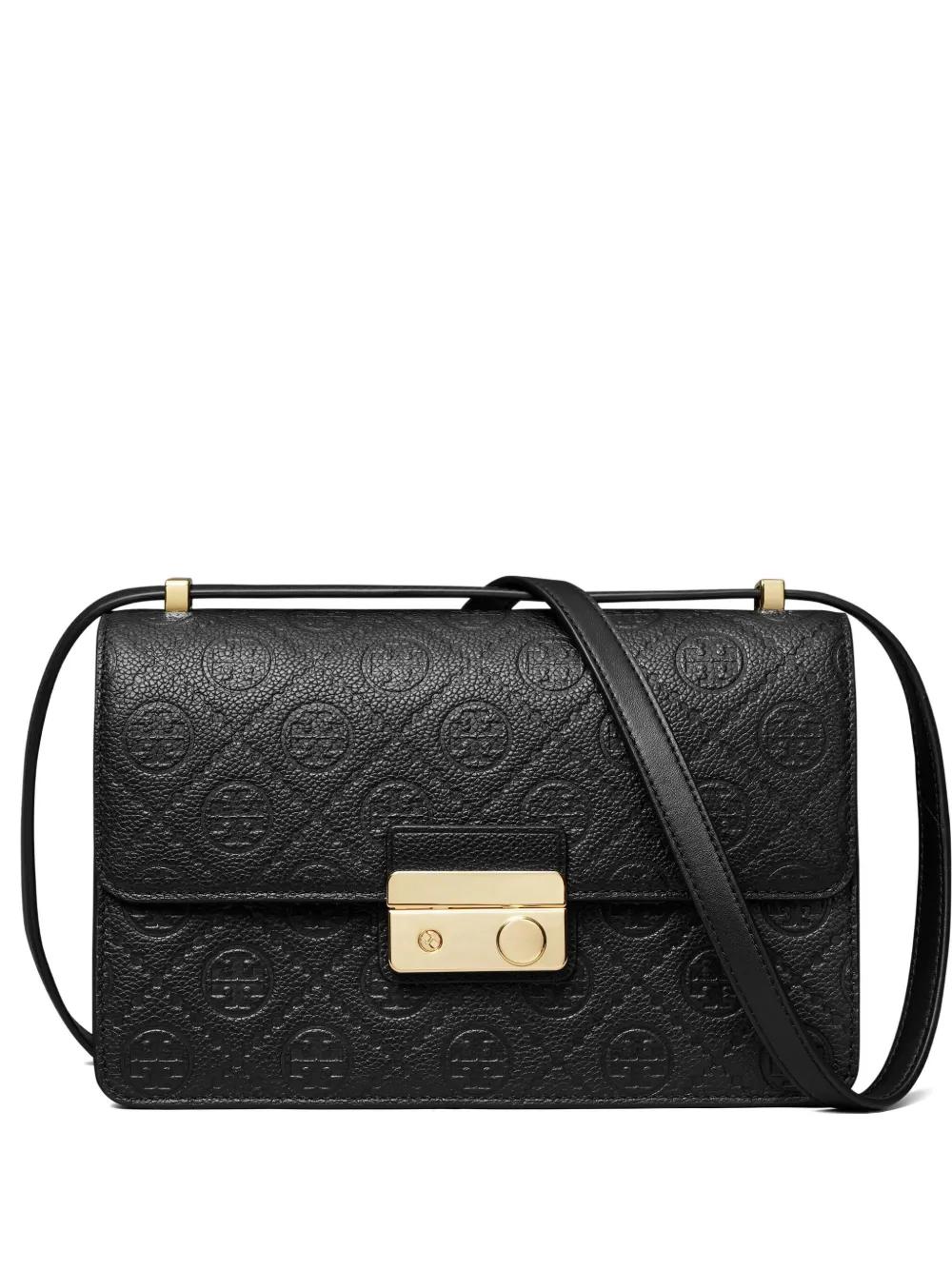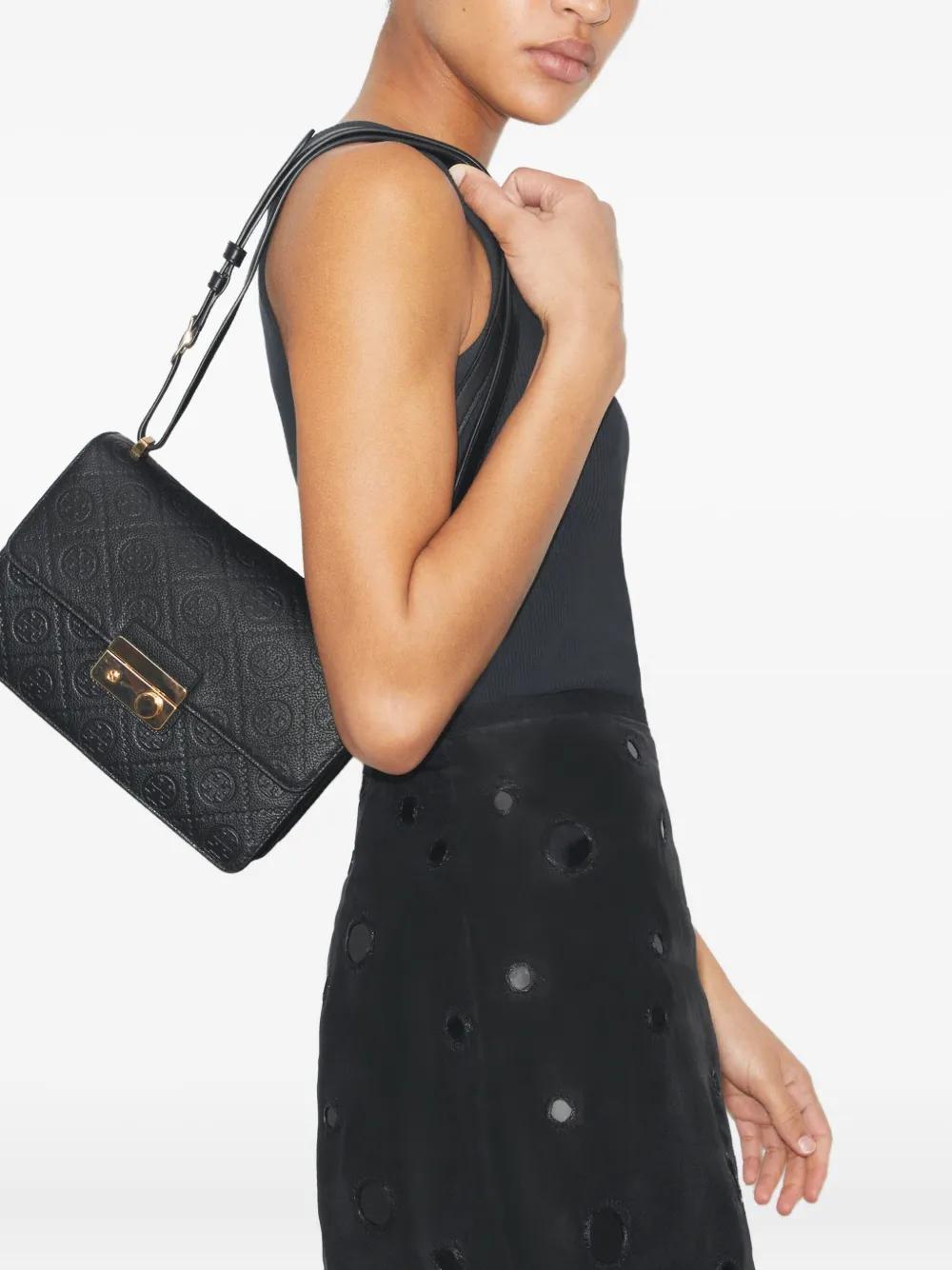 Tory Burch T-Monogram embossed leather shoulder bag - Black