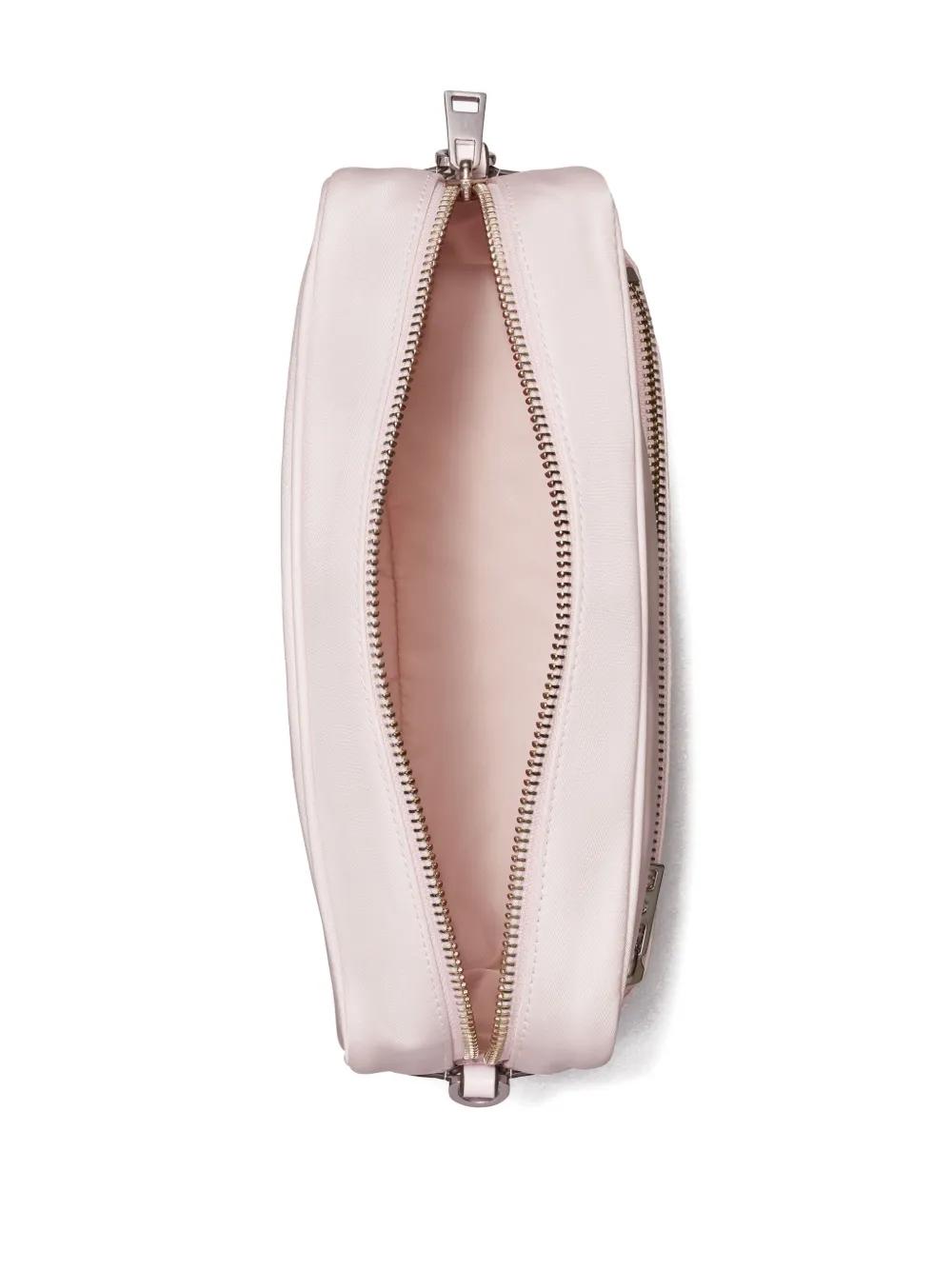 pale pink zip fastening detachable pouch adjustable shoulder strap front zip pocket logo plaque detail