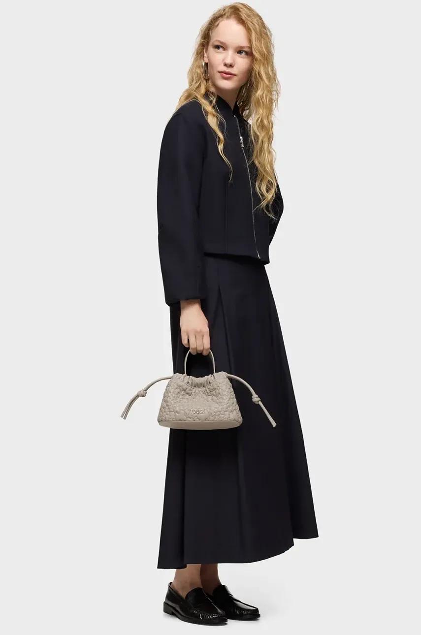 - Zapięcie na magnes. - Kieszonka wewnętrzna zapinana na suwak. - Model z podszewką. - Nie mieści formatu A4. - Posiada uchwyt i odpinany pasek z regulacją. - Głębokość: 10 cm. - Wysokość: 14 cm. - Szerokość u podstawy: 22 cm.