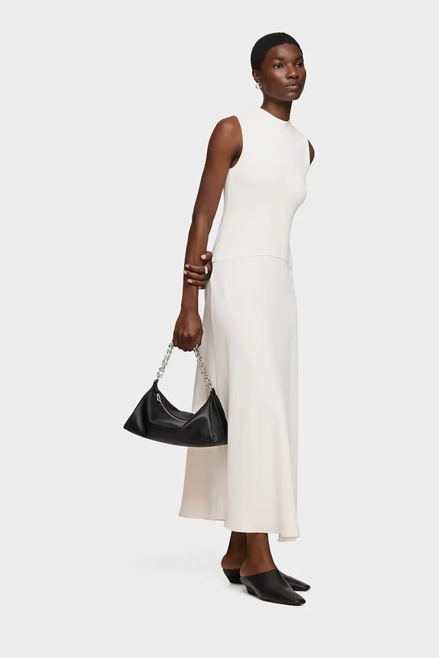 - Model wyprodukowany zgodnie z założeniami organu Leather Working Group, który wydaje garbarniom certyfikaty na drodze rygorystycznych audytów. Celem tych działań jest ograniczenie zużycia energii i wody potrzebnej do garbowania skóry, a także wyeliminowanie zanieczyszczenia ściekami. - Nie mieści formatu A4. - Zapięcie na suwak. - Kieszonka wewnętrzna zapinana na suwak. - Odpinany pasek z regulacją. - Odpinany łańcuch. - Wysokość: 18 cm. - Szerokość u podstawy: 34 cm. - Głębokość: 15 cm.