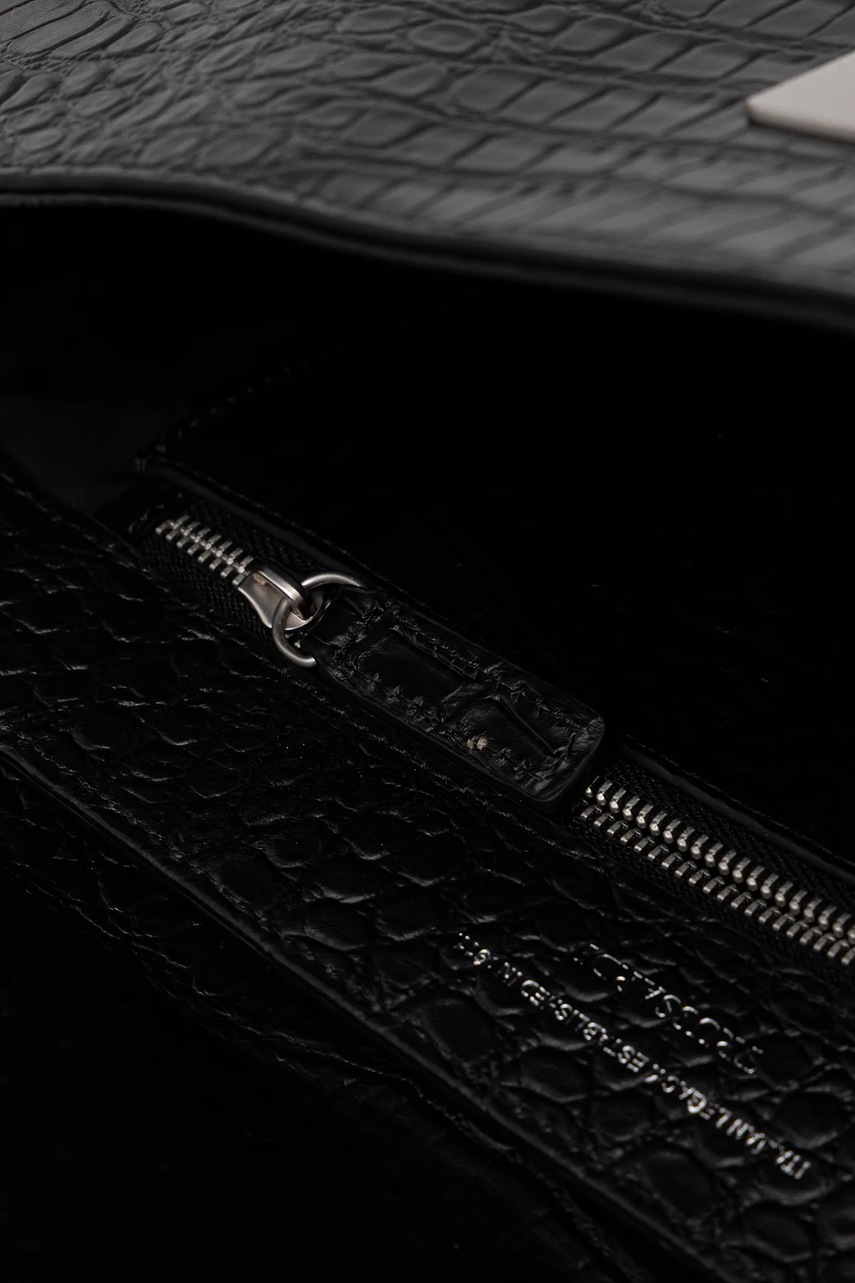 Uwaga: oryginalna rozmiarówka produktów tej marki jest rozmiarówką włoską. Informujemy, że rozmiary na metkach mogą różnić się od zamawianych ze względu na zastosowany przelicznik. - Klapa zapinana na magnes. - Kieszonka wewnętrzna zapinana na suwak. - Posiada uchwyt i odpinany pasek z regulacją. - Nie mieści formatu A4. - Dołączony tekstylny worek zabezpiecza produkt przed kurzem. - Długość uchwytu: 20 cm. - Długość minimalna paska: 103 cm. - Długość maksymalna paska: 117 cm. - Głębokość: 8 cm. - Wysokość: 16 cm. - Szerokość u podstawy: 30 cm.
