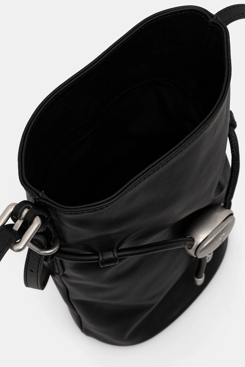 Uwaga: oryginalna rozmiarówka produktów tej marki jest rozmiarówką włoską. Informujemy, że rozmiary na metkach mogą różnić się od zamawianych ze względu na zastosowany przelicznik. - Komora ściągana troczkami. - Nieodpinany pasek z regulacją. - Model nie posiada kieszeni wewnętrznych. - Dołączony tekstylny worek zabezpiecza produkt przed kurzem. - Nie mieści formatu A4. - Model z podszewką. - Długość minimalna paska: 102 cm. - Długość maksymalna paska: 118 cm. - Głębokość: 10 cm. - Wysokość: 23 cm. - Szerokość u podstawy: 15 cm.