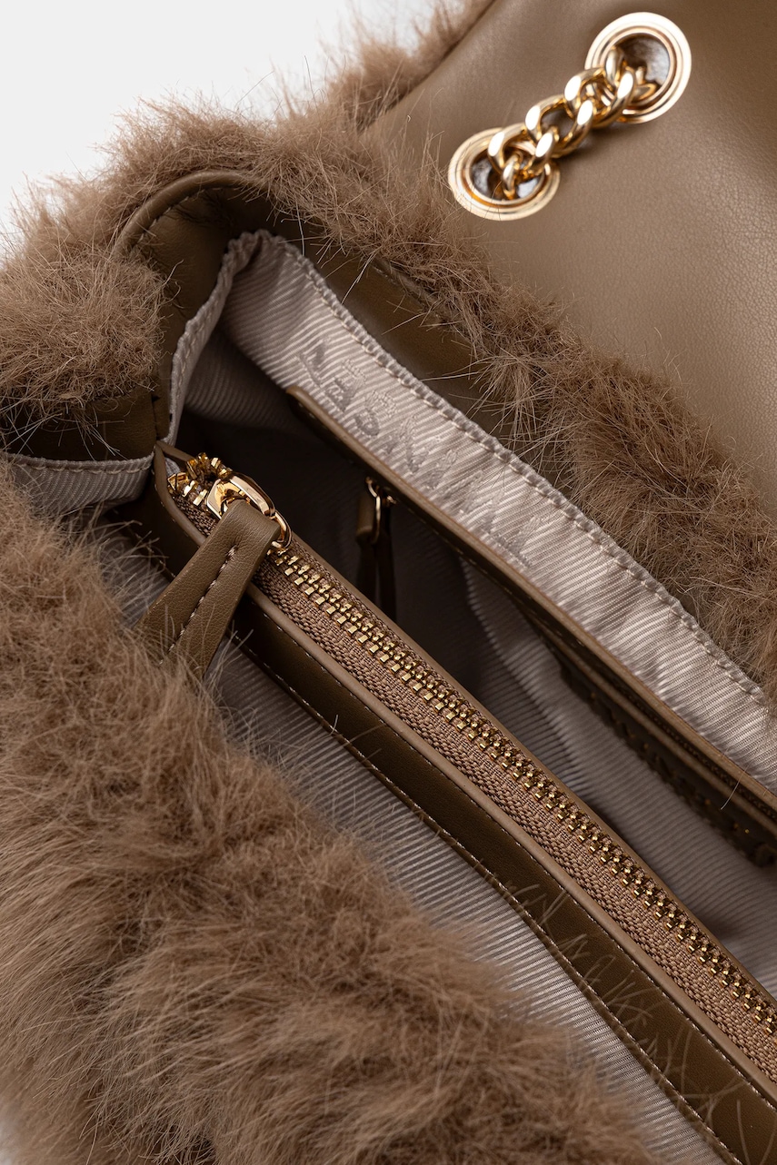 - Klapa zapinana na magnes. - Posiada trzy przegrody, w tym jedną zapinaną na suwak. - Kieszonka wewnętrzna zapinana na suwak. - Wewnętrzna, wsuwana kieszeń na telefon. - Krótkie uchwyty dla komfortowego noszenia w dłoni. - Nie mieści formatu A4. - Długość uchwytów: 63 cm. - Głębokość: 8 cm. - Wysokość: 17 cm. - Szerokość u podstawy: 26 cm.