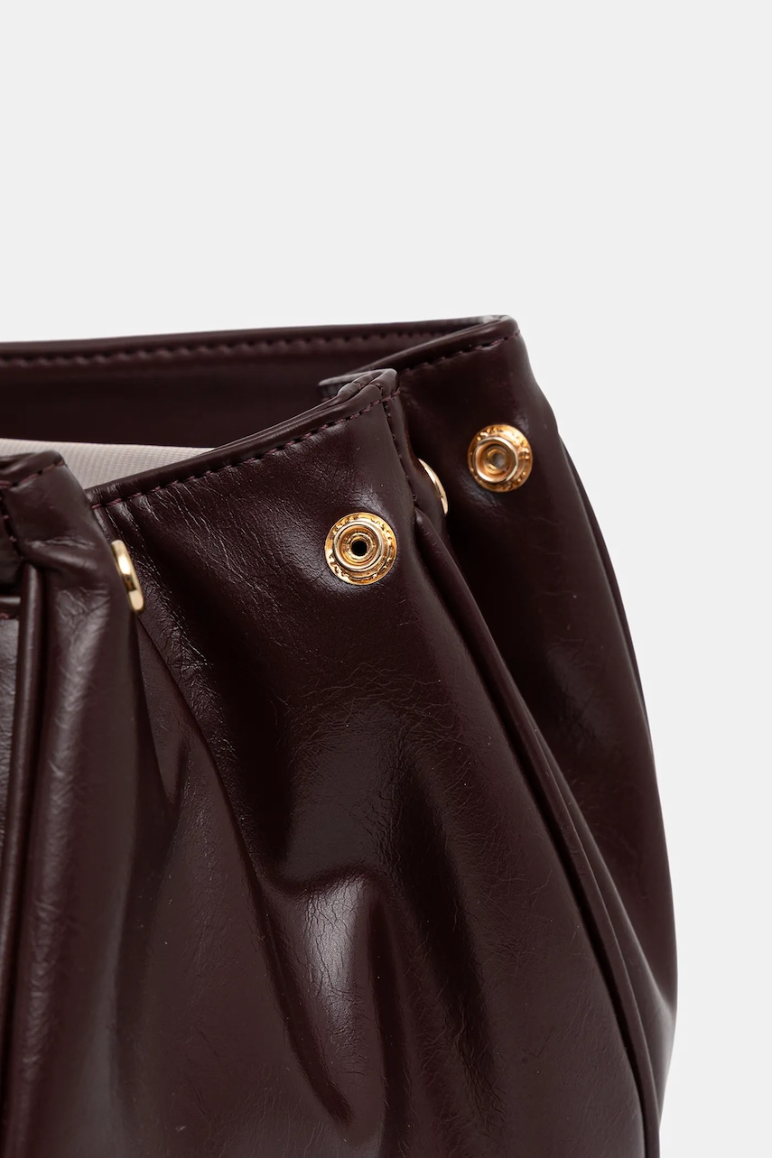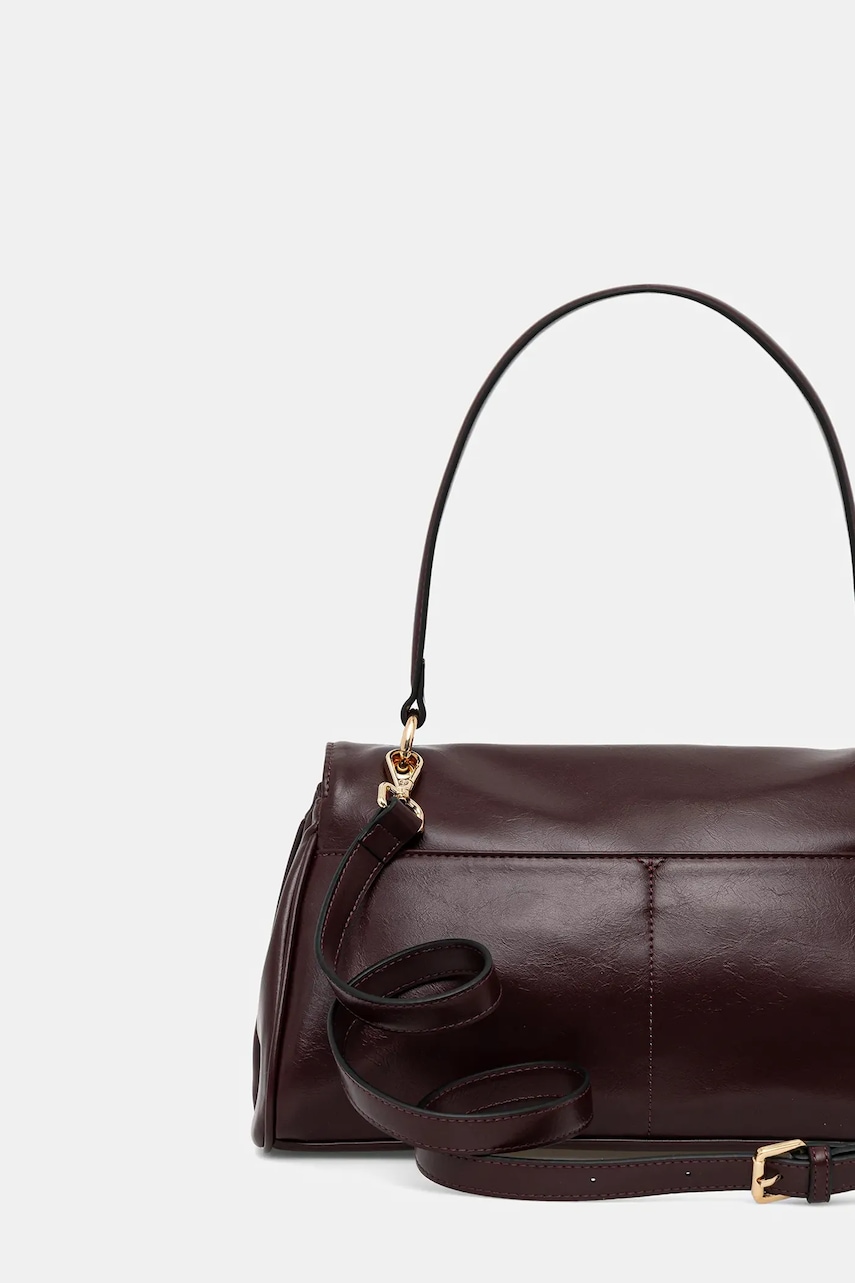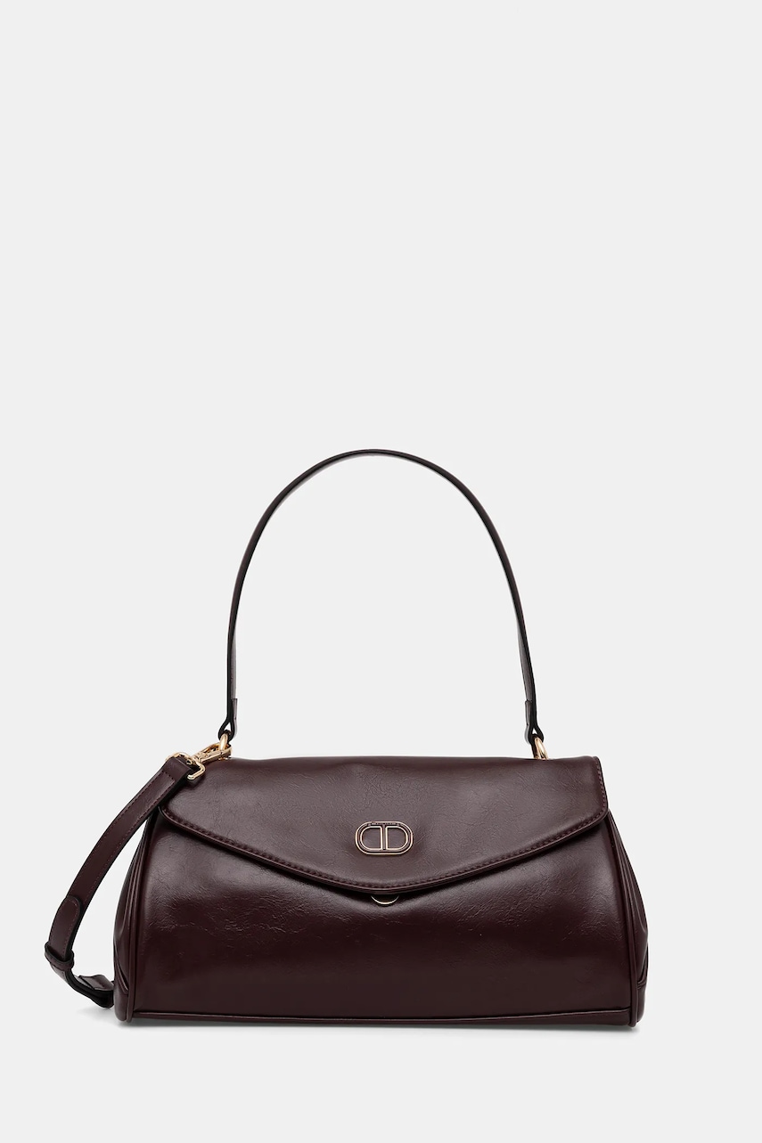 - Zapięcie na zatrzask. - Regulacja głębokości na zatrzaski. - Posiada dwie przegrody. - Posiada dwie kieszenie wewenętrzne: jedna wsuwana, druga zapinana na suwak. - Z tyłu wsuwane kieszonki na karty lub inne drobiazgi. - Model z podszewką. - Nie mieści formatu A4. - Posiada uchwyt i odpinany pasek z regulacją. - Dołączony tekstylny worek zabezpiecza produkt przed kurzem. - Głębokość: 15 cm. - Wysokość: 17,5 cm. - Szerokość u podstawy: 35,5 cm. - Długość uchwytu: 54 cm. - Długość minimalna paska: 104,5 cm. - Długość maksymalna paska: 120 cm.