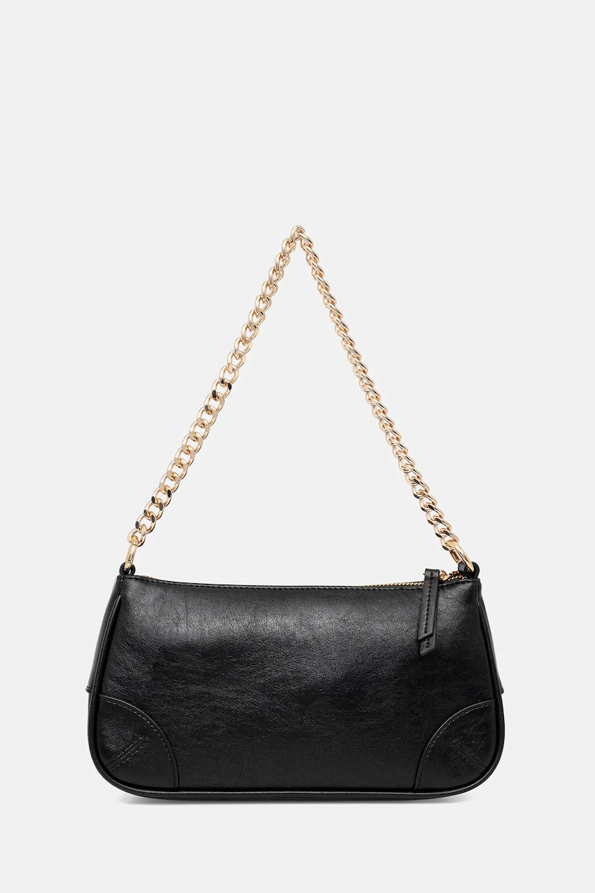- Zapięcie na suwak. - Posiada uchwyty i nieodpinany pasek z regulacją. - Dołączony tekstylny worek zabezpiecza produkt przed kurzem. - Model z podszewką. - Nie mieści formatu A4. - Posiada dwie kieszenie wewnętrzne: jedna wsuwana, druga zapinana na suwak. - Długość minimalna paska: 100 cm. - Długość maksymalna paska: 115 cm. - Długość uchwytu: 45 cm. - Głębokość: 6,5 cm. - Wysokość: 14 cm. - Szerokość u podstawy: 26,5 cm.