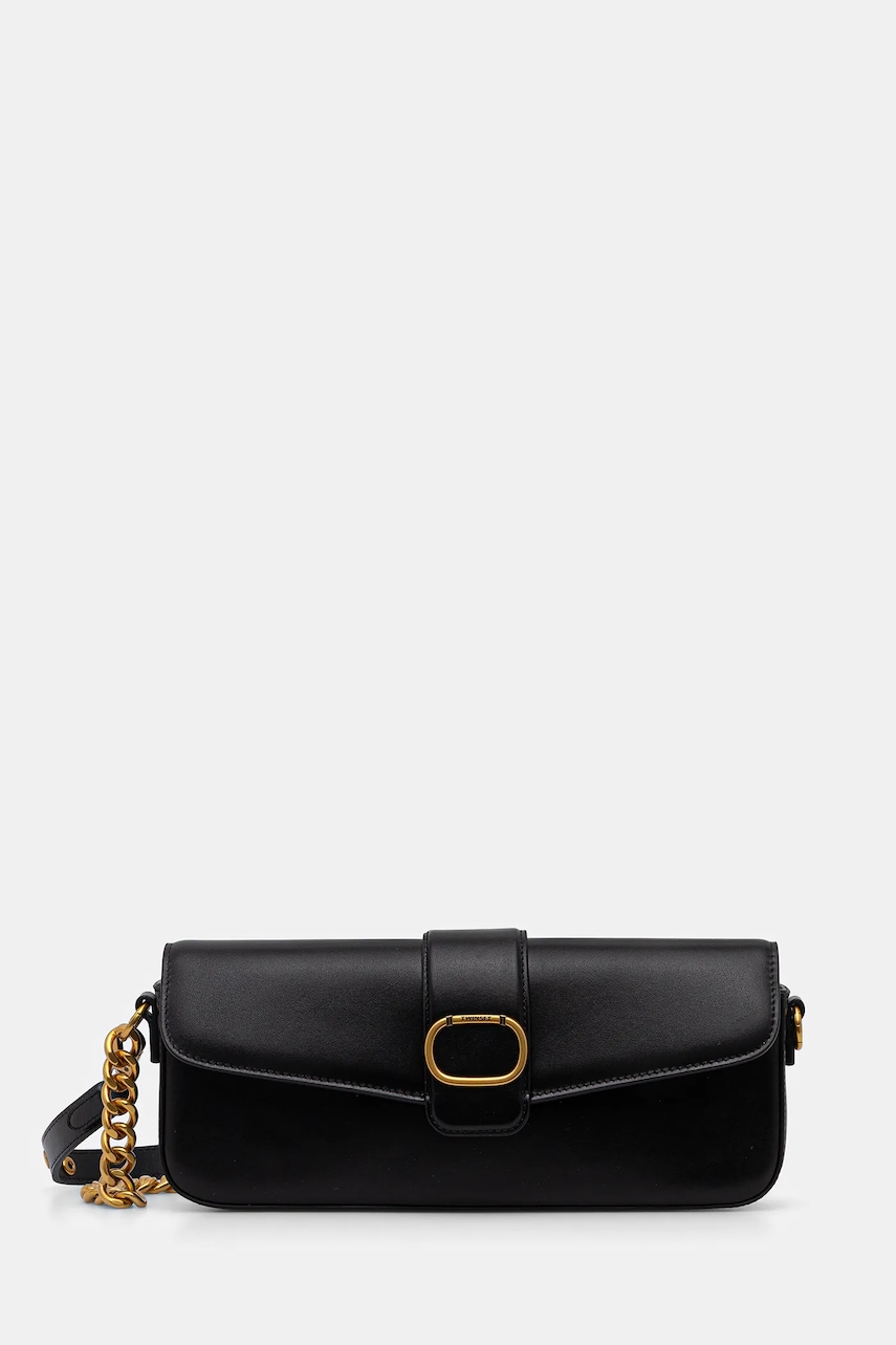 - Nie mieści formatu A4. - Klapa zapinana na zatrzask. - Posiada dwie kieszenie wewenętrzne: jedna wsuwana, druga zapinana na suwak. - Model z podszewką. - Posiada odpinany uchwyt i odpinany pasek z regulacją. - Dołączony tekstylny worek zabezpiecza produkt przed kurzem. - Długość minimalna paska: 76 cm. - Długość maksymalna paska: 121 cm. - Długość uchwytu: 59 cm. - Głębokość: 5 cm. - Wysokość: 11 cm. - Szerokość u podstawy: 30 cm.