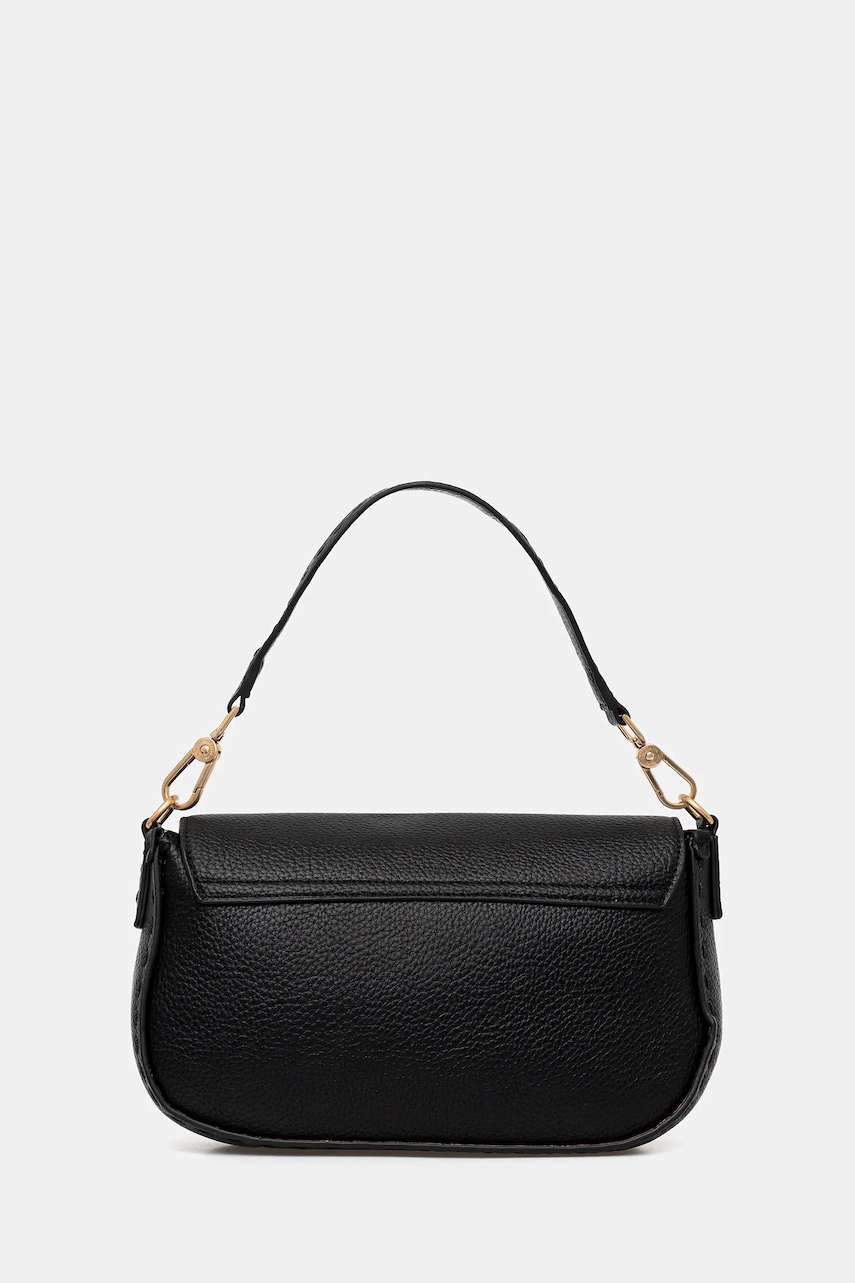 - Klapa z zapięciem typu twist-lock. - Nie mieści formatu A4. - Model bez podszewki. - Posiada odpinany uchwyt i odpinany pasek z regulacją. - Dołączony tekstylny worek zabezpiecza produkt przed kurzem. - Długość minimalna paska: 103 cm. - Długość maksymalna paska: 117 cm. - Długość uchwytów: 33/43 cm. - Głębokość: 8/9 cm. - Wysokość: 12/15 cm. - Szerokość u podstawy: 24/28 cm.