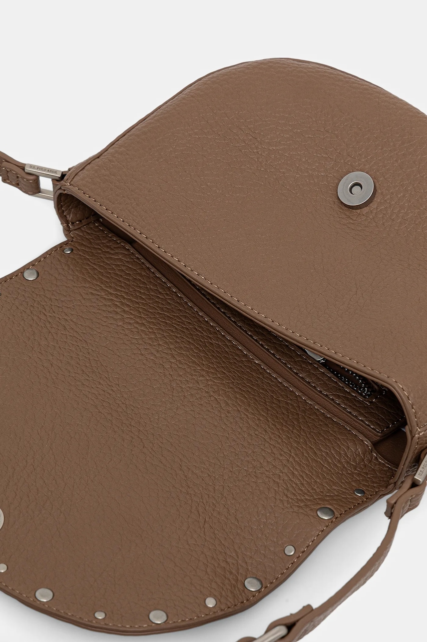 - Klapa zapinana na magnes. - Kieszonka wewnętrzna zapinana na suwak. - Nie mieści formatu A4. - Model bez podszewki. - Nieodpinany pasek z regulacją. - Długość minimalna paska: 71 cm. - Długość maksymalna paska: 112 cm. - Głębokość: 7 cm. - Wysokość: 15 cm. - Szerokość w najszerszym miejscu: 22 cm.