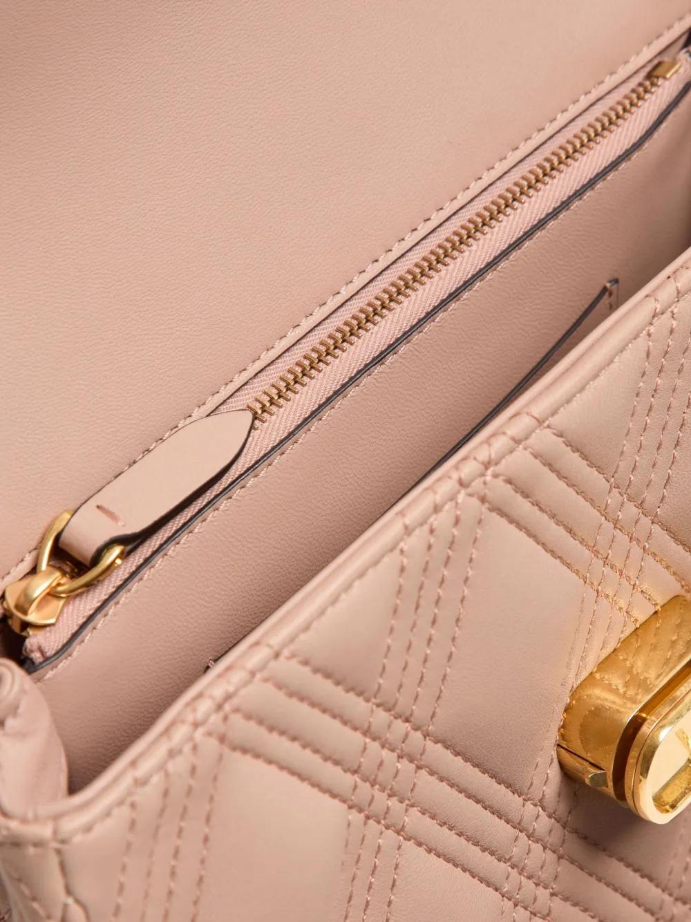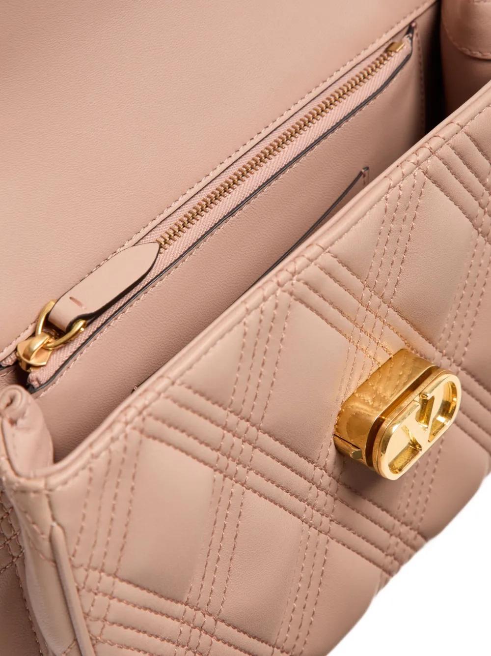 pink calf leather quilted foldover top with magnetic fastening signature V logo plaque logo-engraved gold-tone hardware chain-link shoulder strap internal zip-fastening pocket