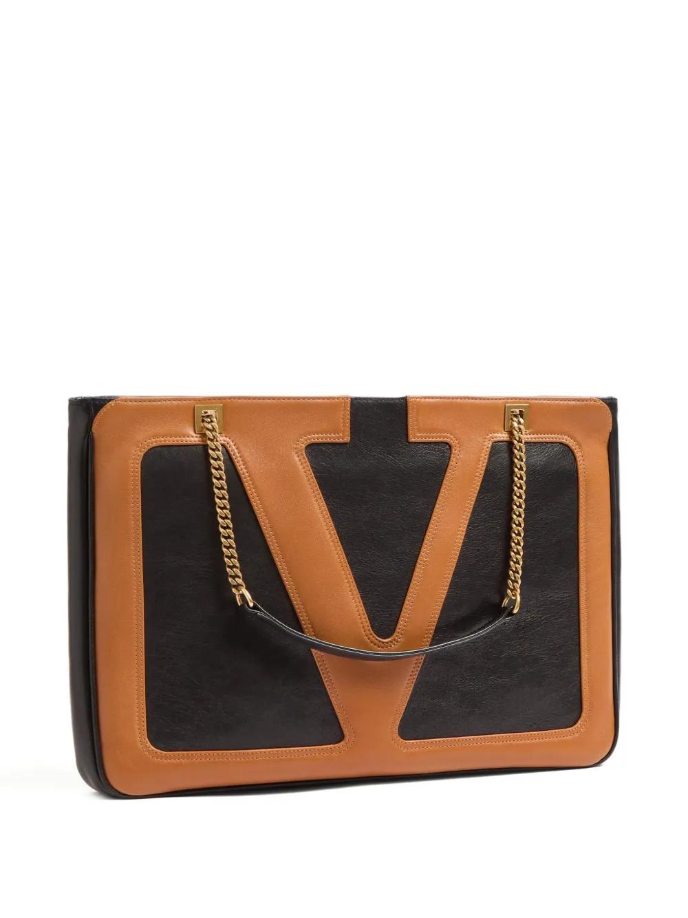 black/camel brown calf leather VLogo Signature top zip fastening two chain-link top handles main compartment rear zip-fastening pocket