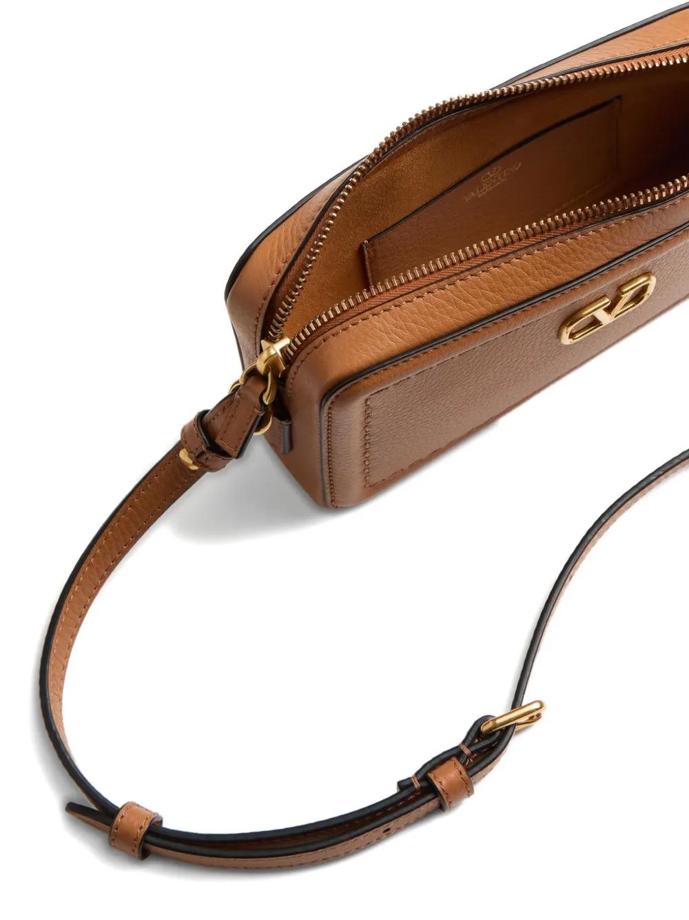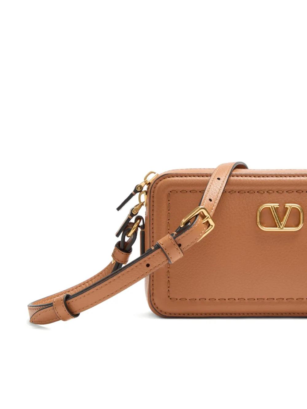 camel brown calf leather VLogo Signature top zip fastening adjustable shoulder strap main compartment