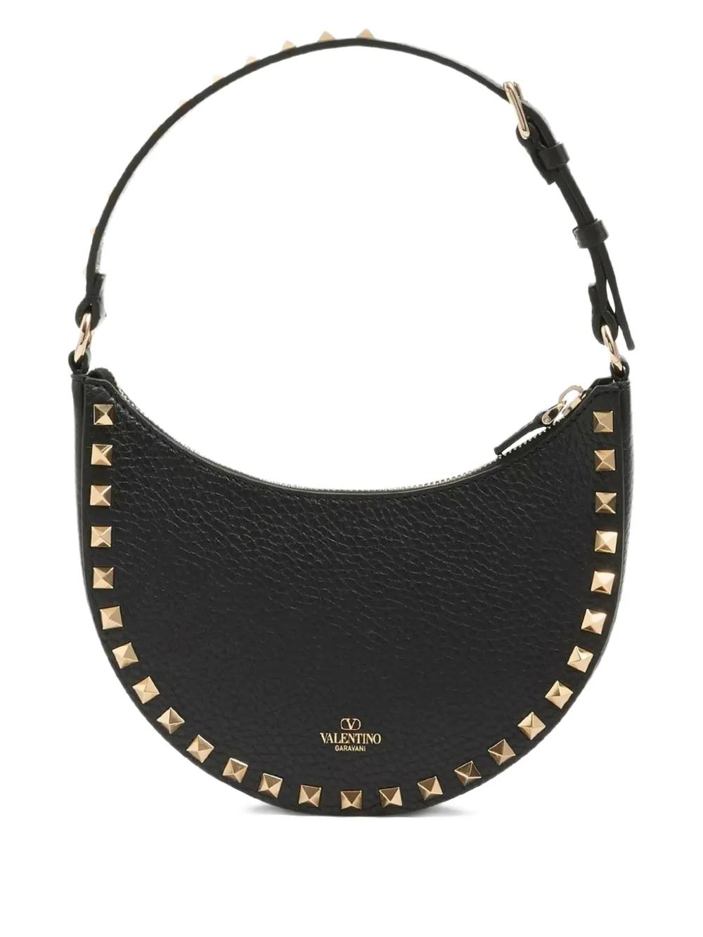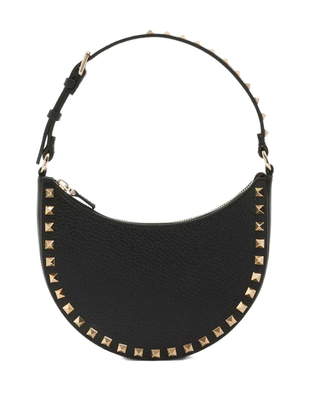 black calf leather signature Rockstud embellishment top zip fastening adjustable shoulder strap logo stamp to the front main compartment internal patch pocket internal logo stamp