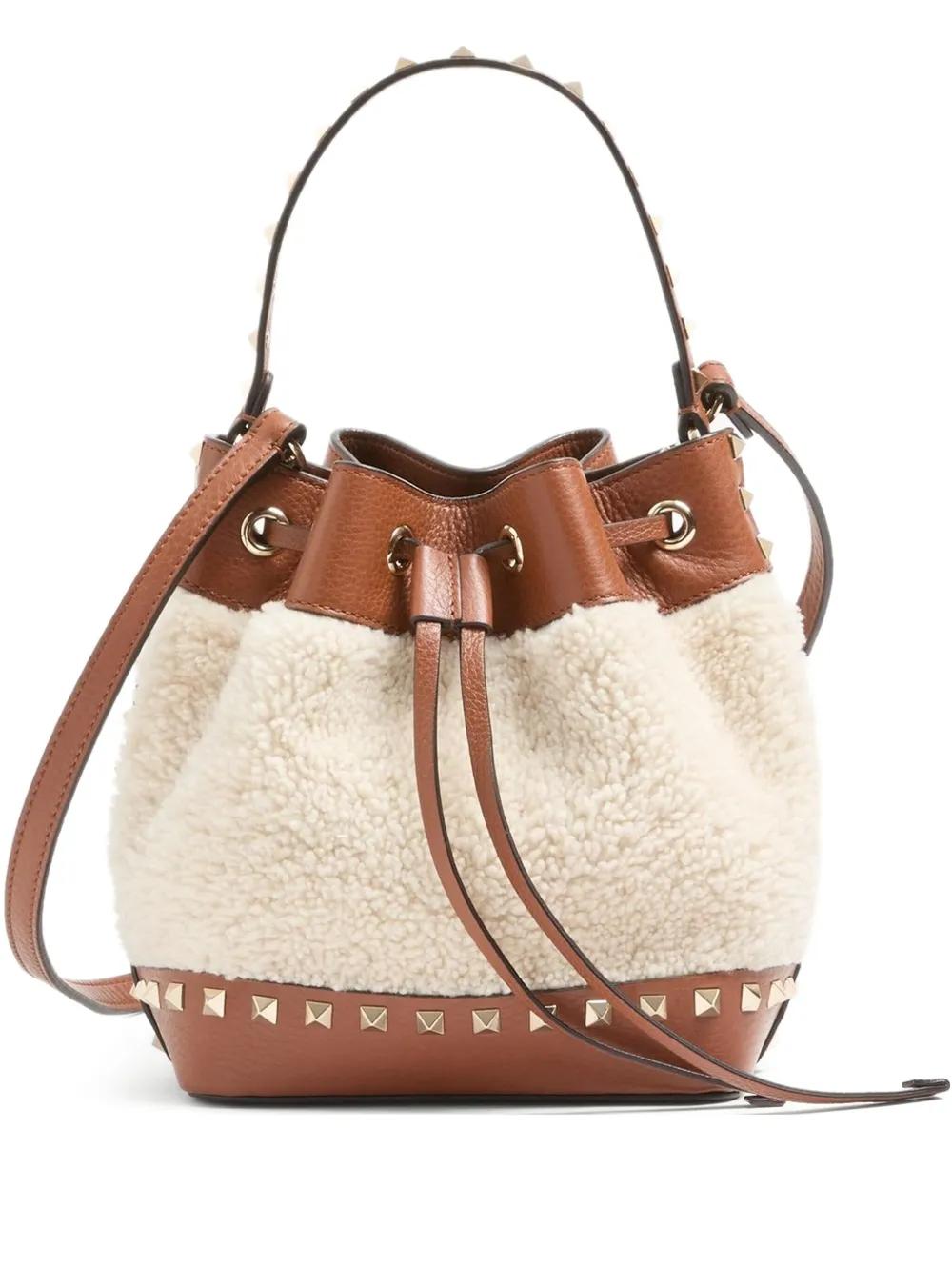 Valentino Garavani Rockstud shearling bucket bag - Neutrals