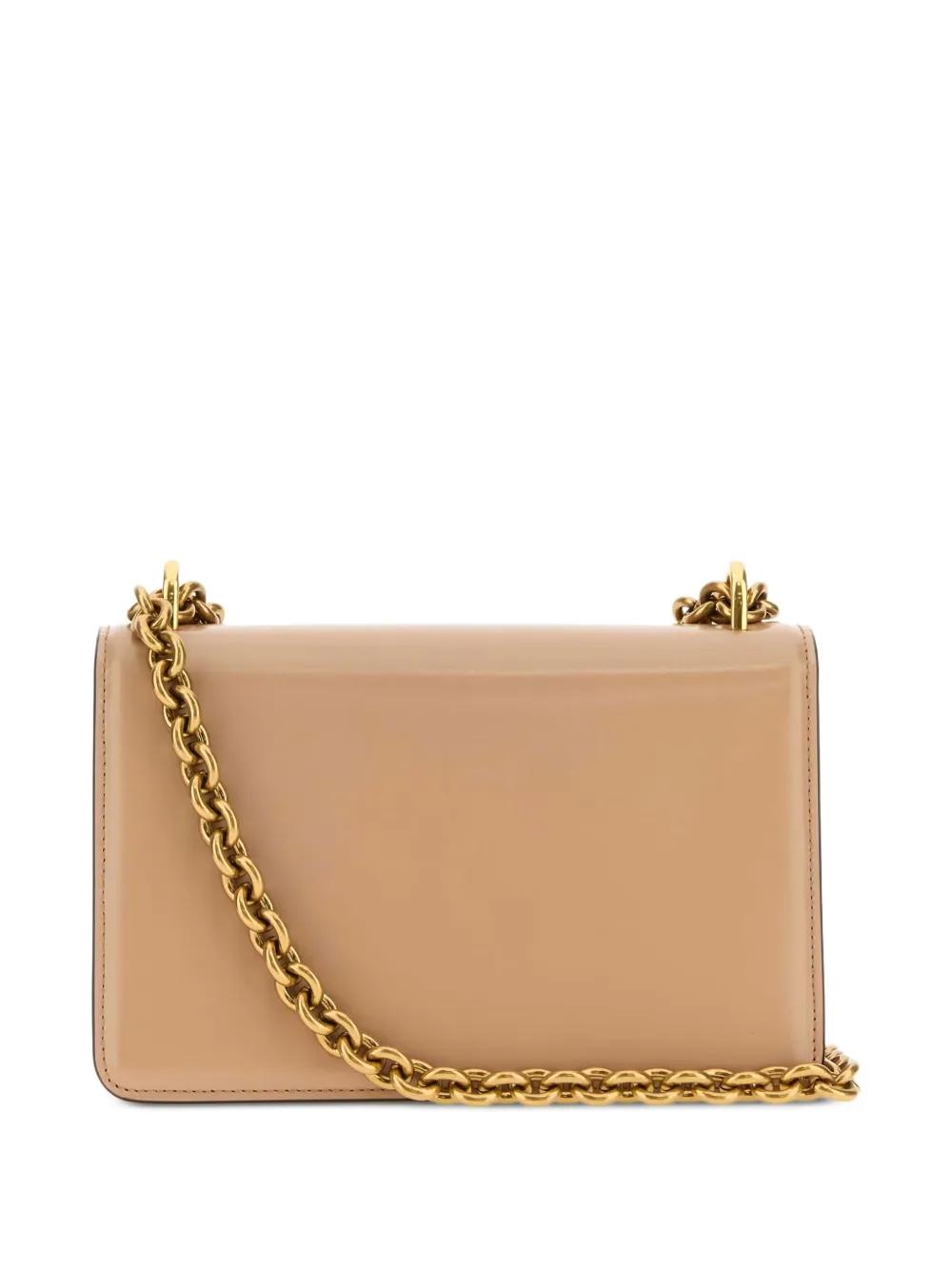 brown calf leather chain strap gold-tone hardware logo detail flap closure