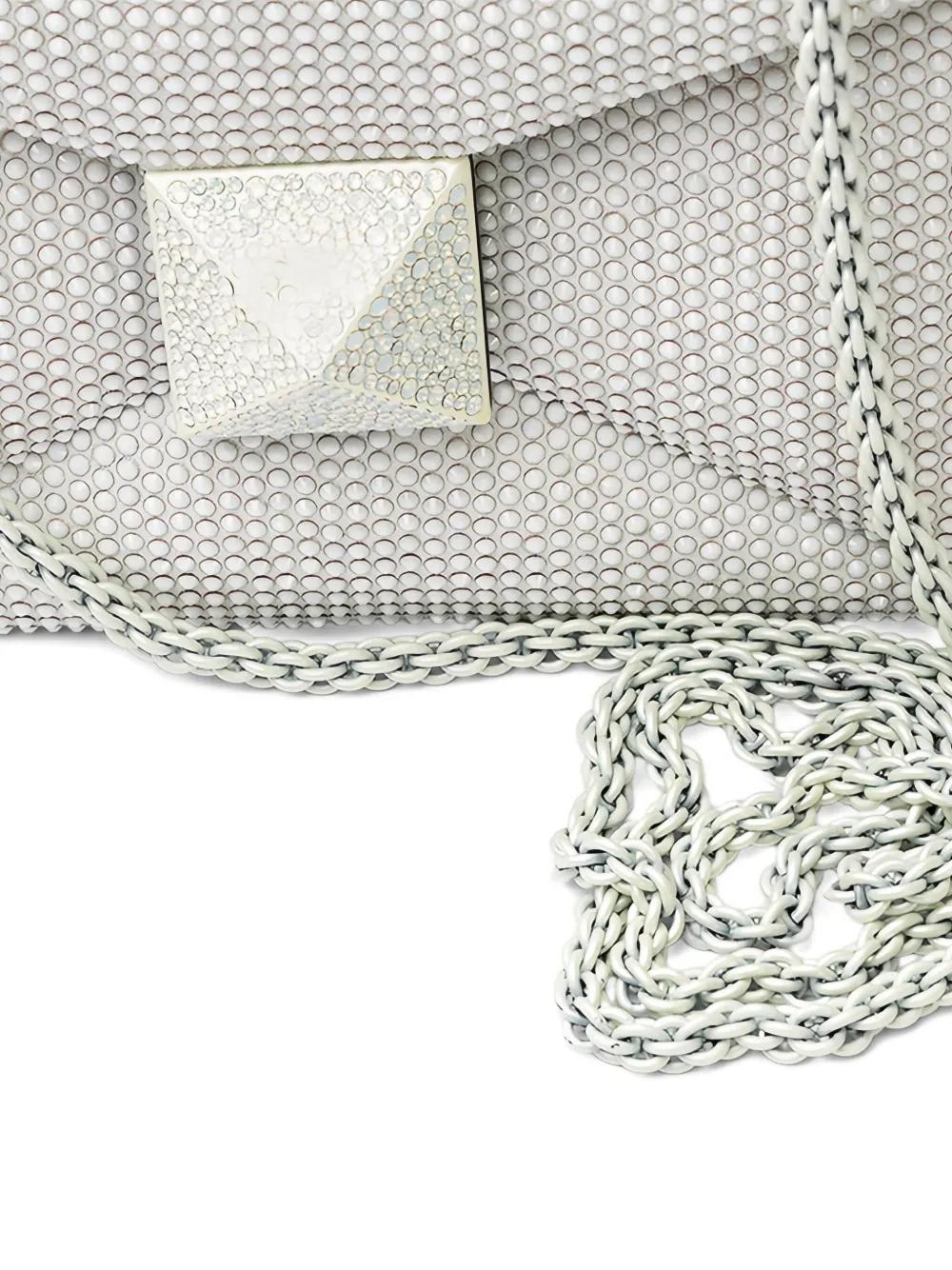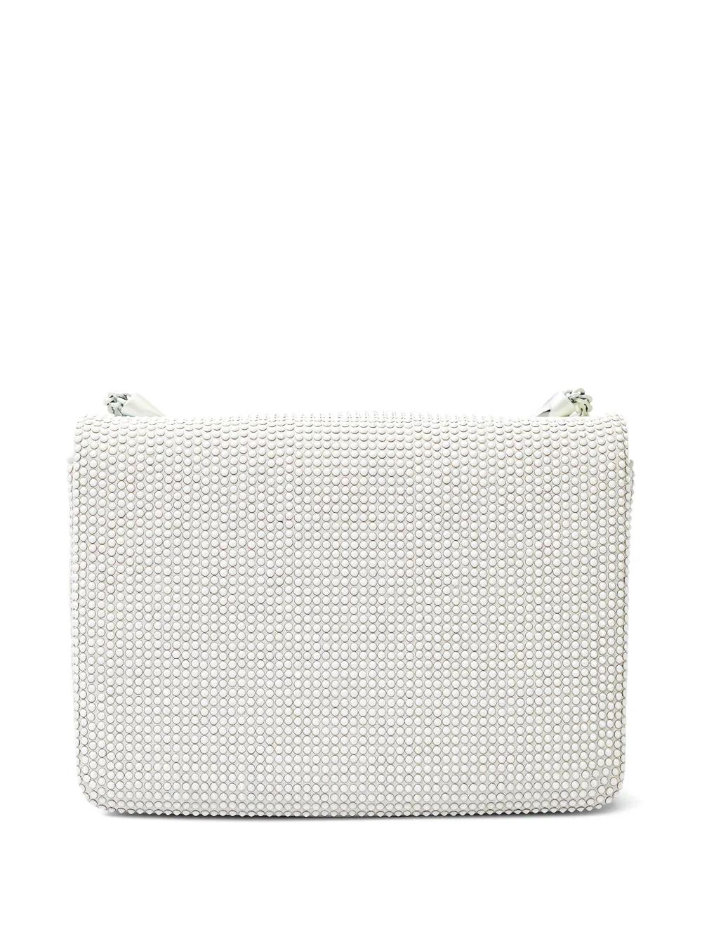 white studded chain-link shoulder strap square shape pyramid stud detail foldover top