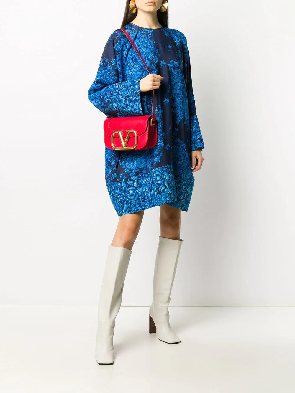 Red leather Supervee crossbody bag from VALENTINO GARAVANI featuring VLOGO detail, gold-tone hardware, front flap closure, magnetic fastening, internal slip pocket and adjustable shoulder strap.