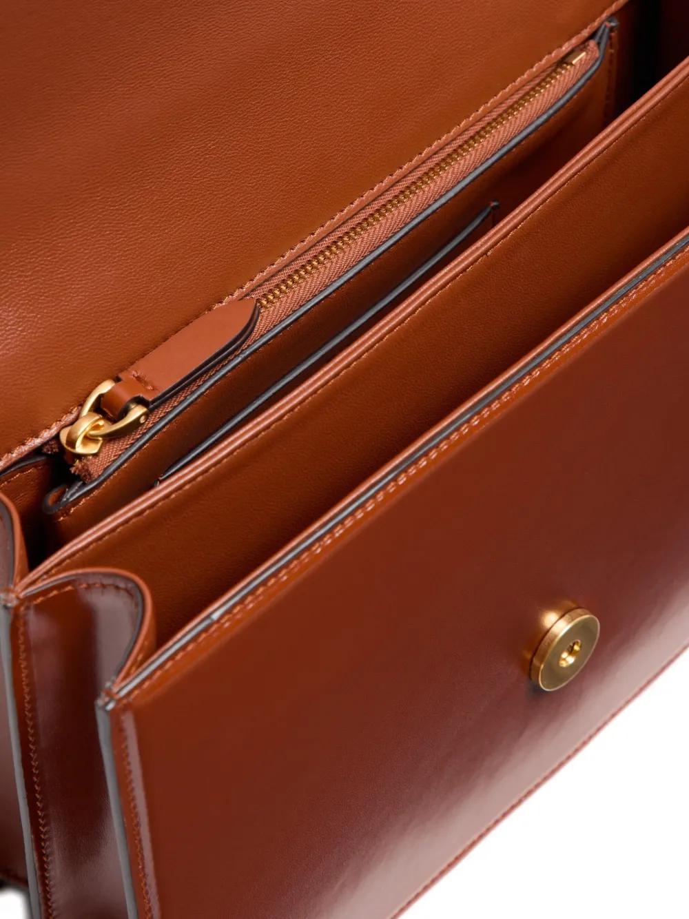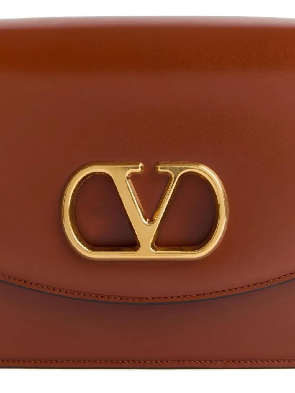 orange calf leather foldover top with press-stud fastening signature V logo plaque chain-link shoulder strap main compartment internal zip-fastening pocket