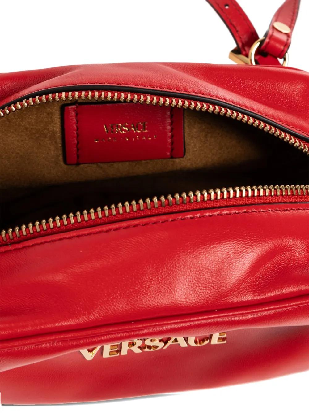 red lambskin logo lettering detachable shoulder strap top handles gold-tone hardware