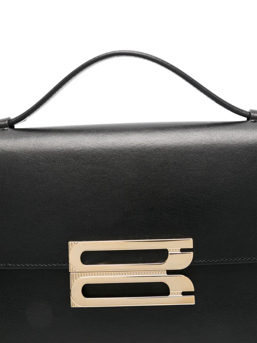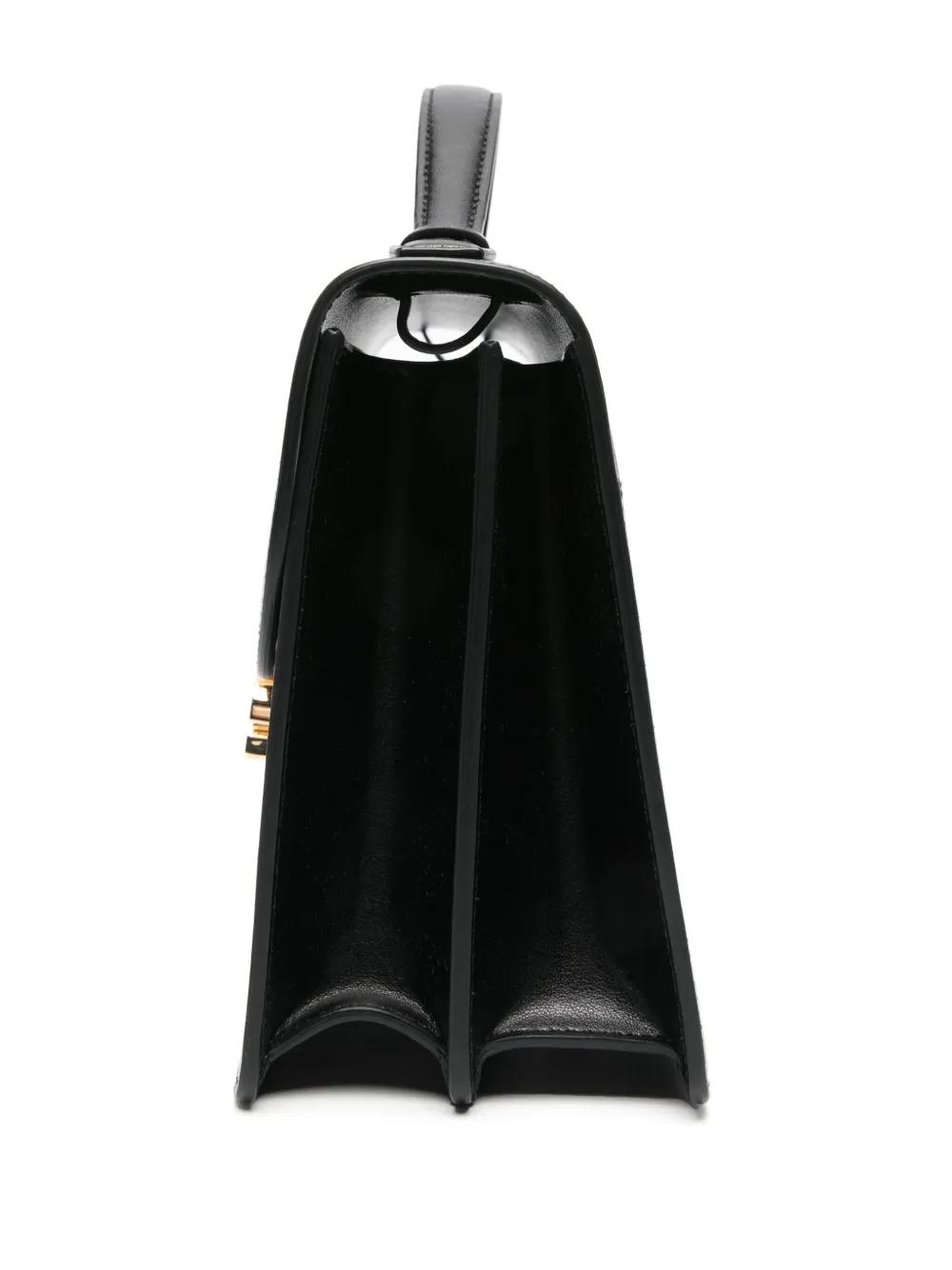 black foldover top with magnetic fastening single top handle adjustable detachable shoulder strap gold-tone logo plaque