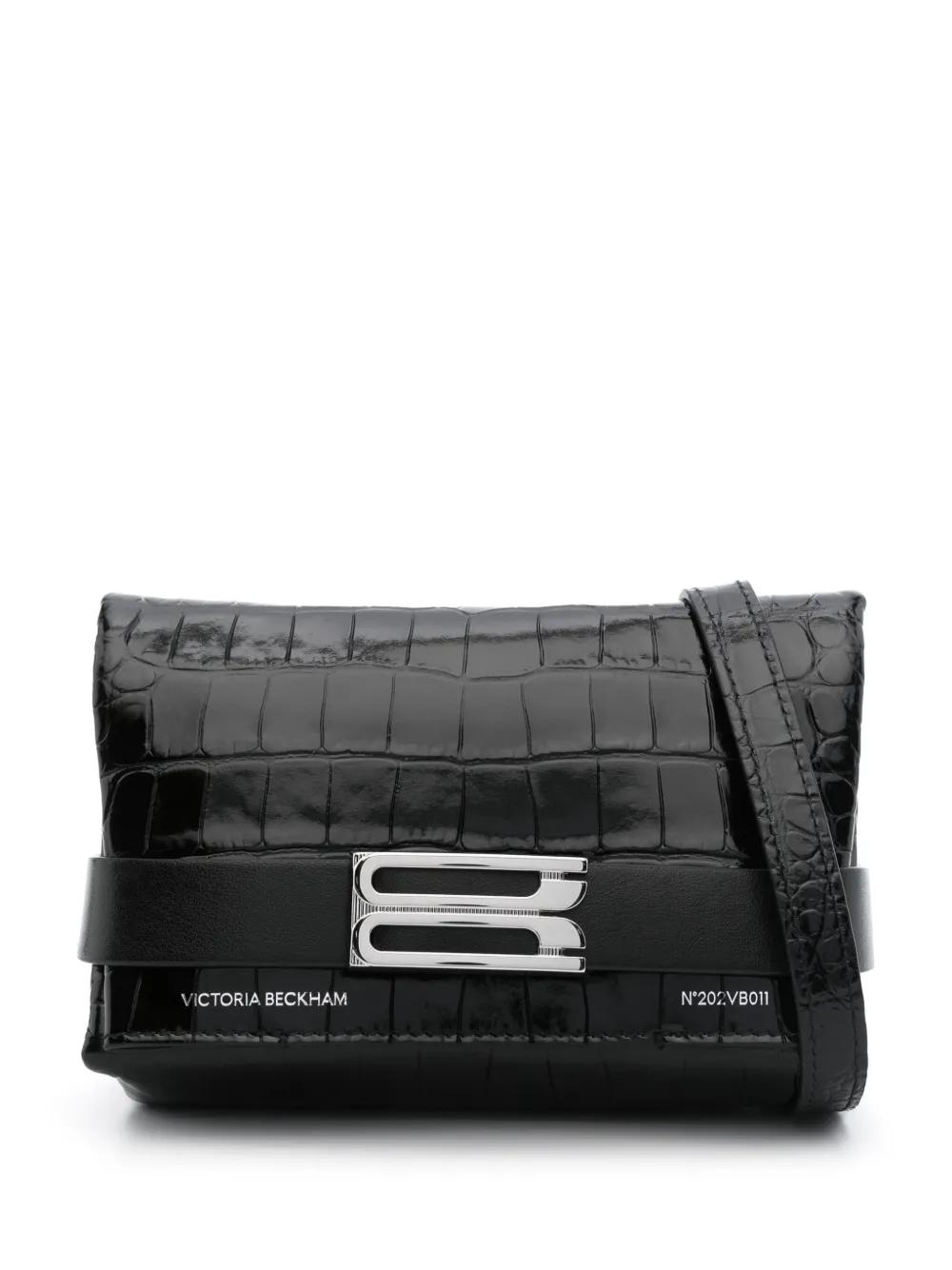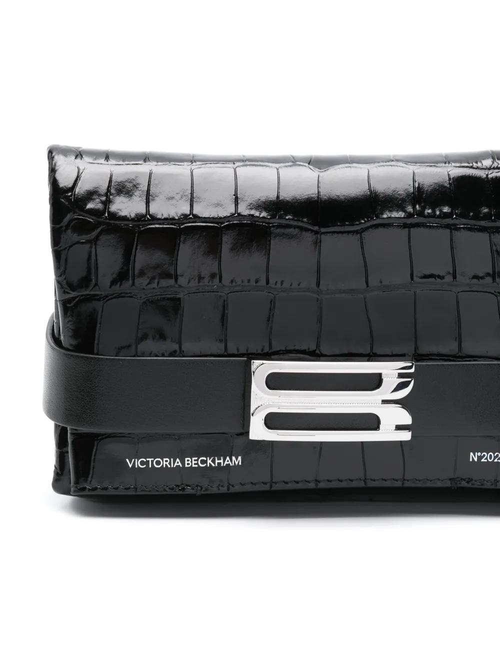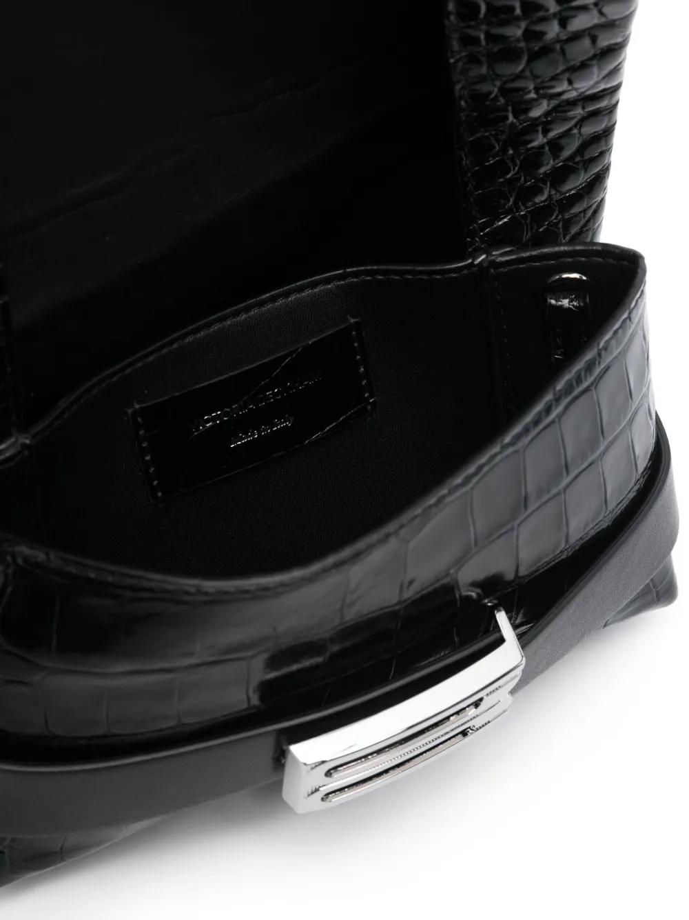 black calf leather embossed crocodile effect foldover top pin fastening detachable shoulder strap logo stamp to the front silver-tone logo plaque partitioned compartment internal logo patch leather lining This piece comes complete with a protective dust bag.