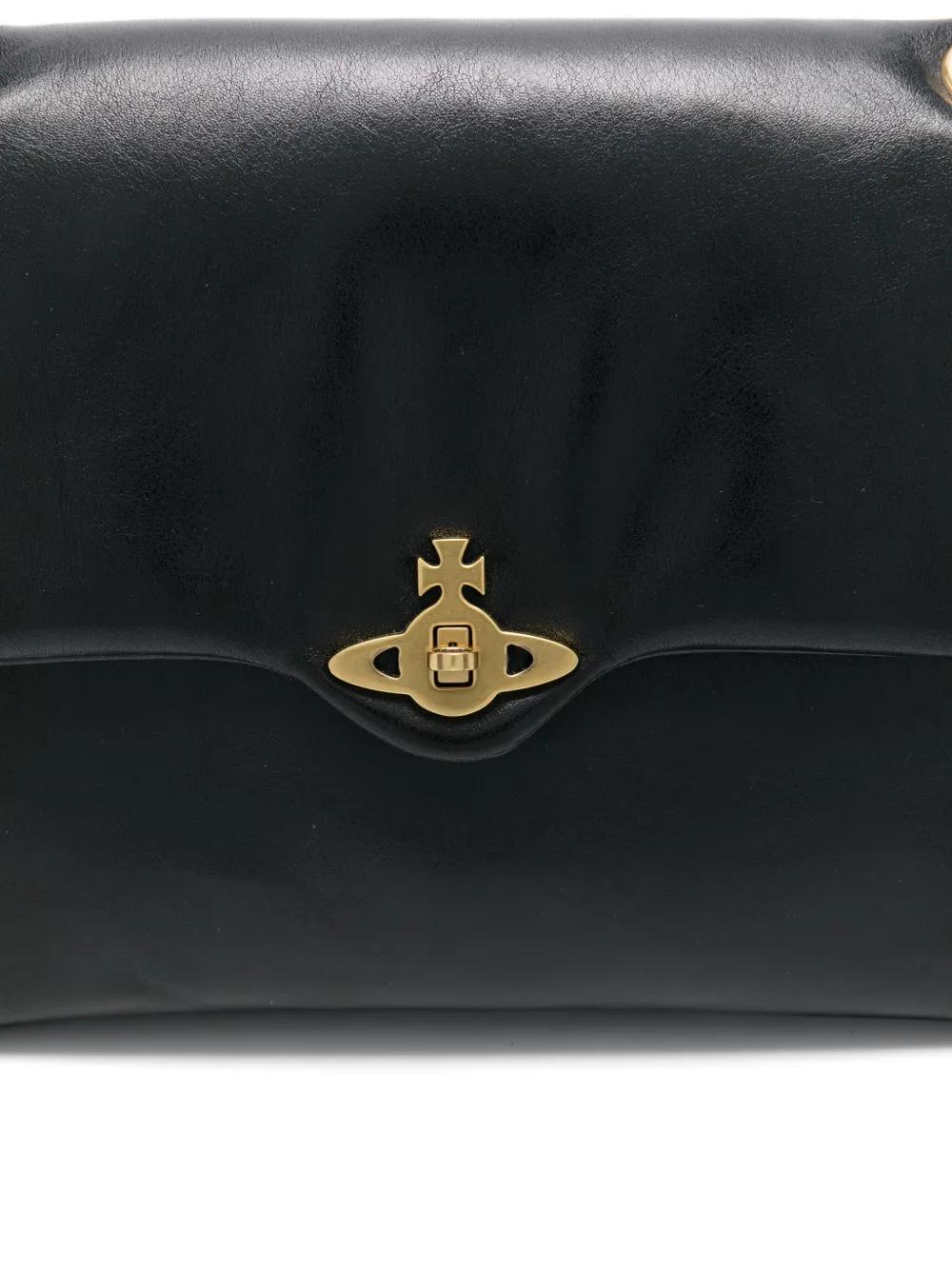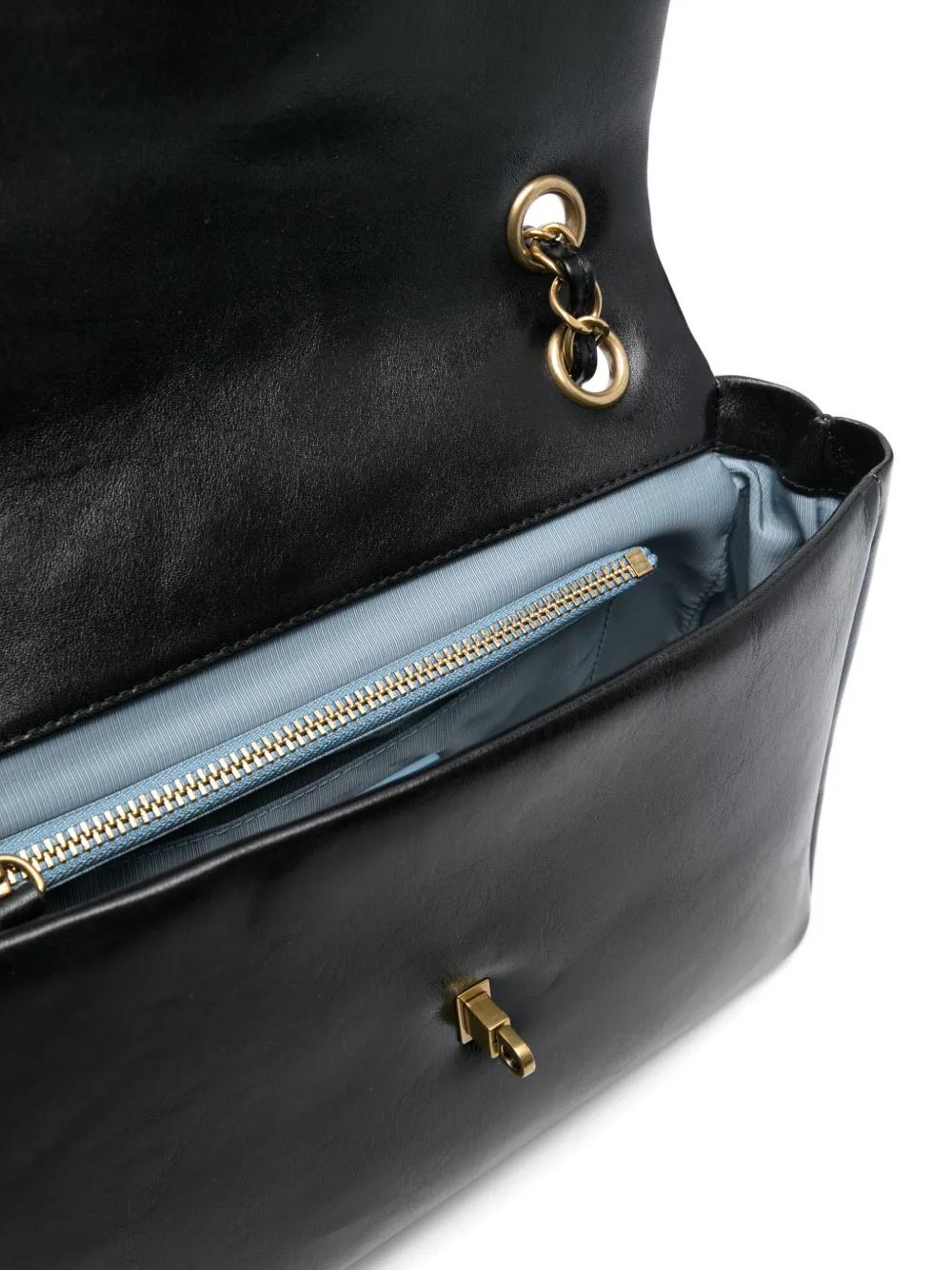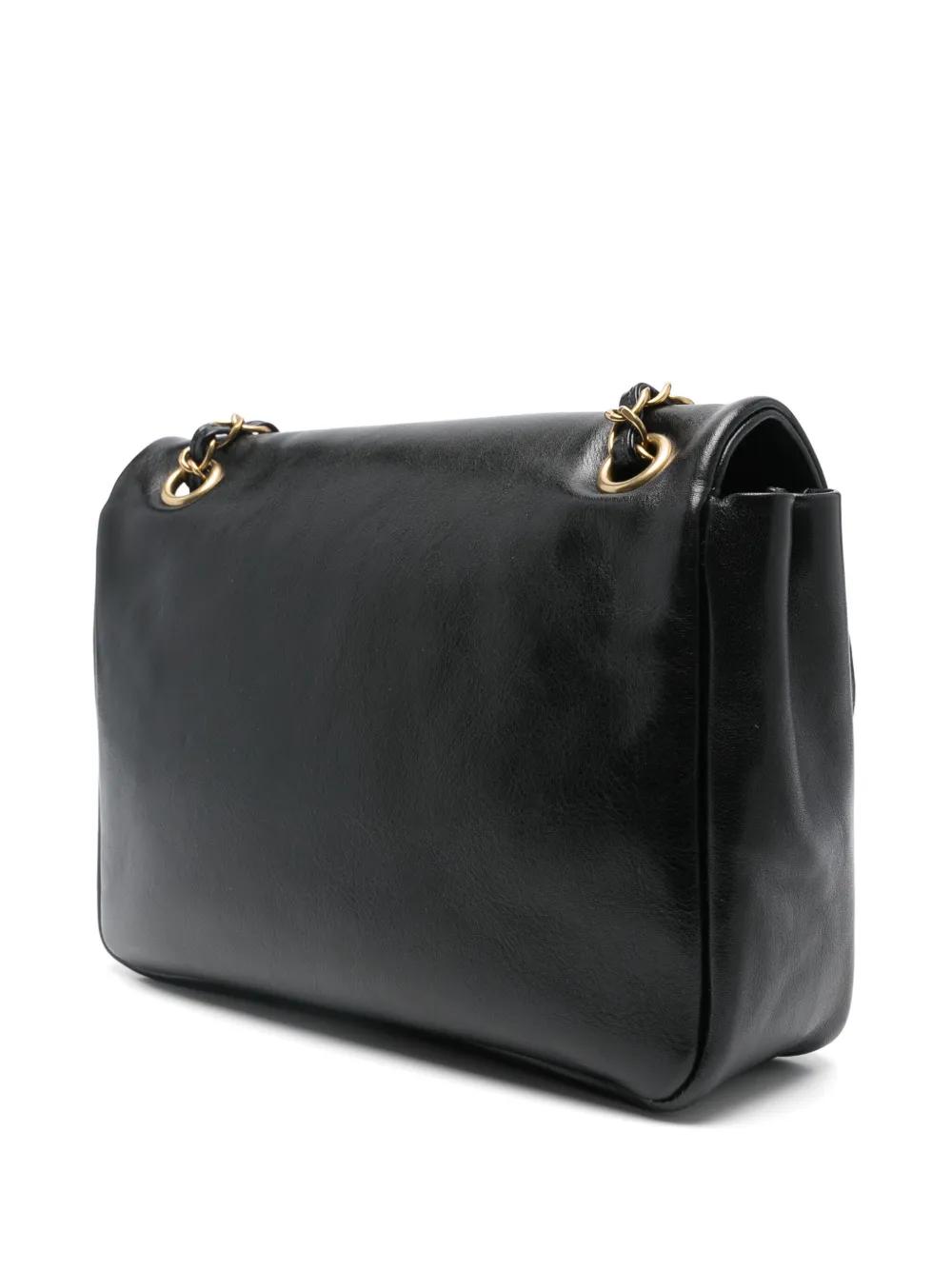 black calf leather foldover top with twist-lock fastening sliding chain-link shoulder strap signature Orb plaque detail main compartment internal logo patch internal zip-fastening pocket full lining This piece comes complete with a protective dust bag.