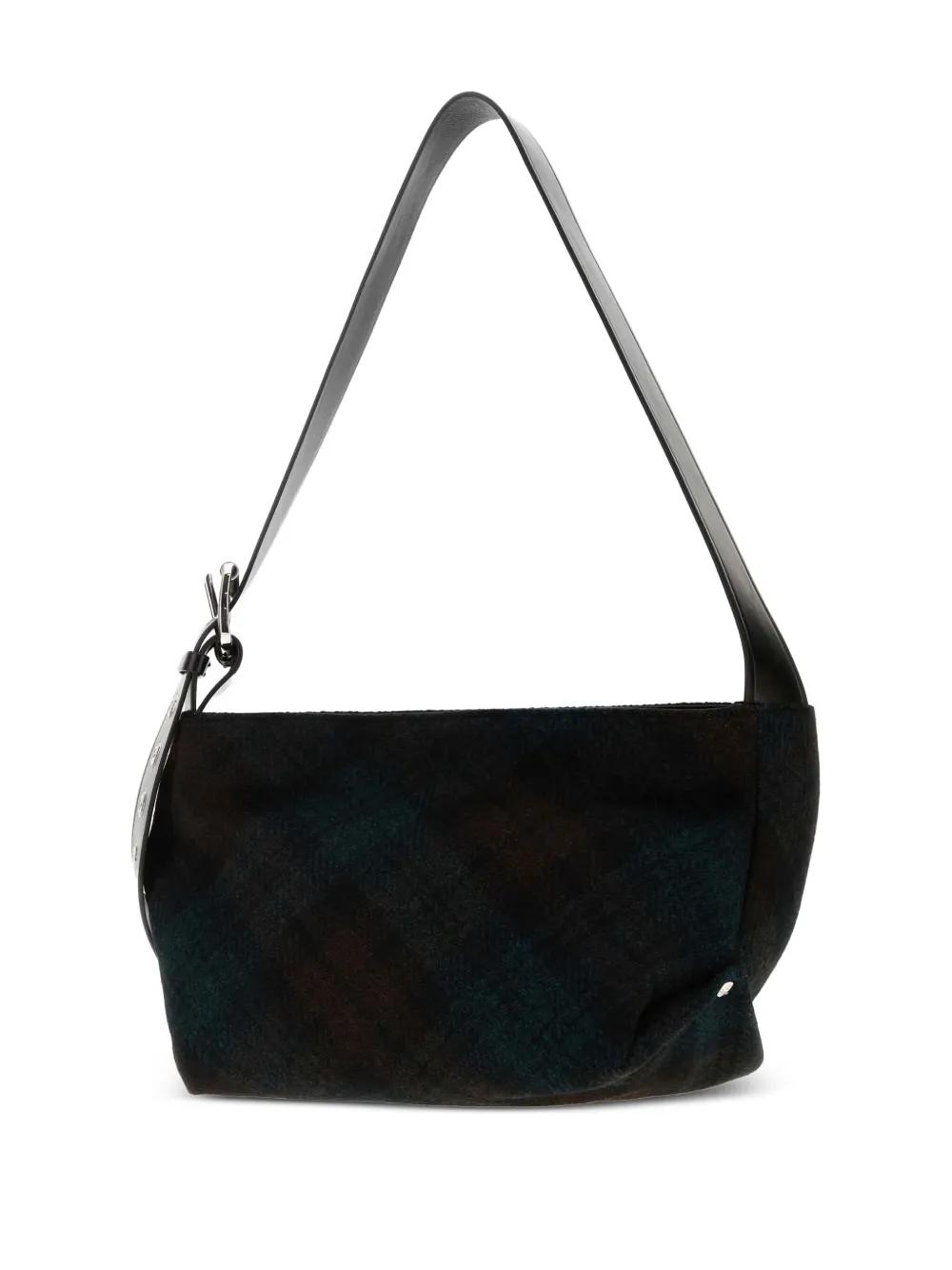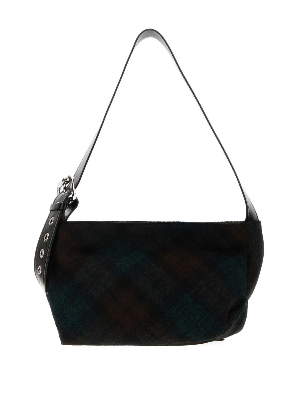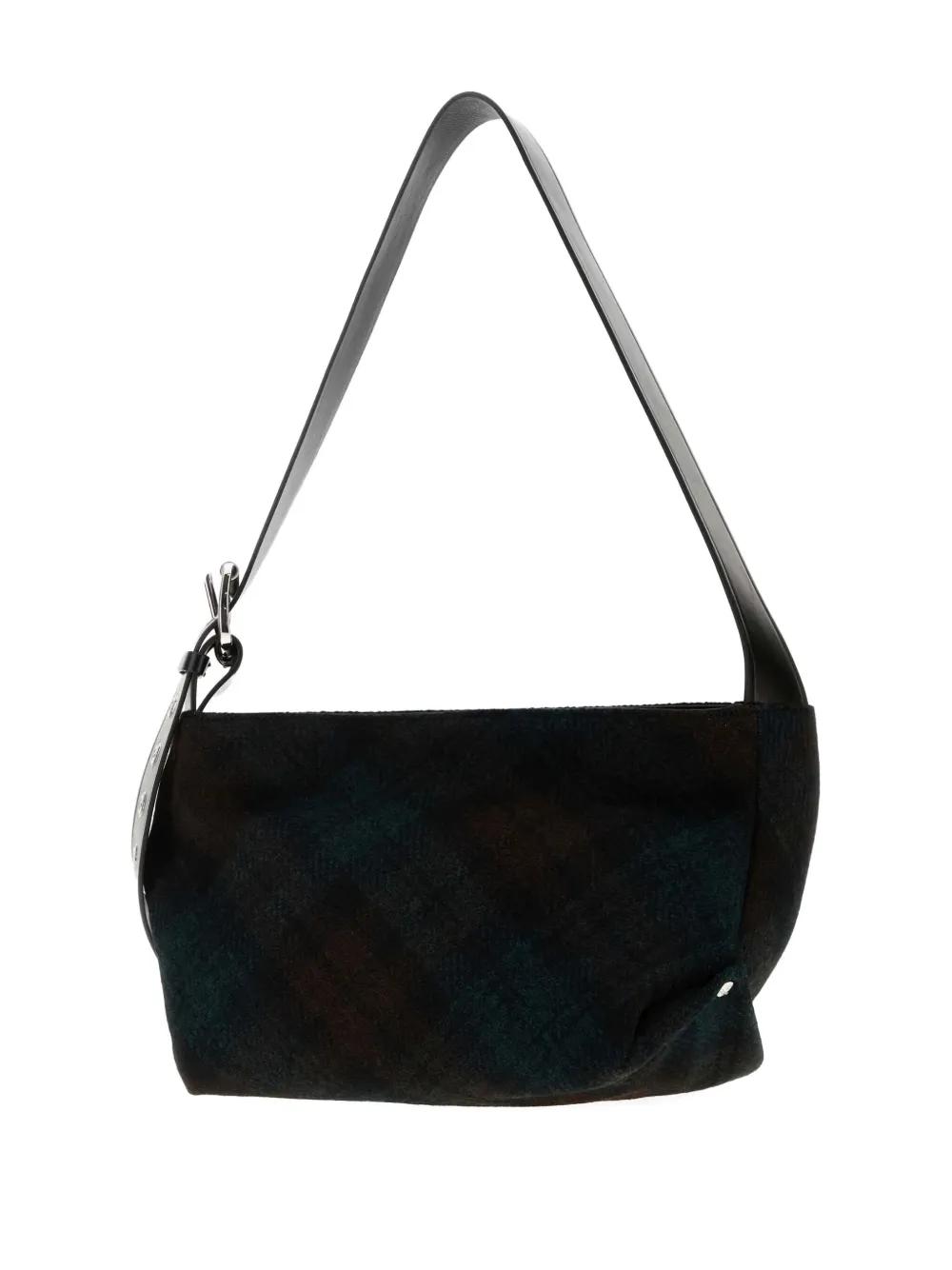 green check pattern adjustable shoulder strap silver-tone hardware top handle internal slip pocket