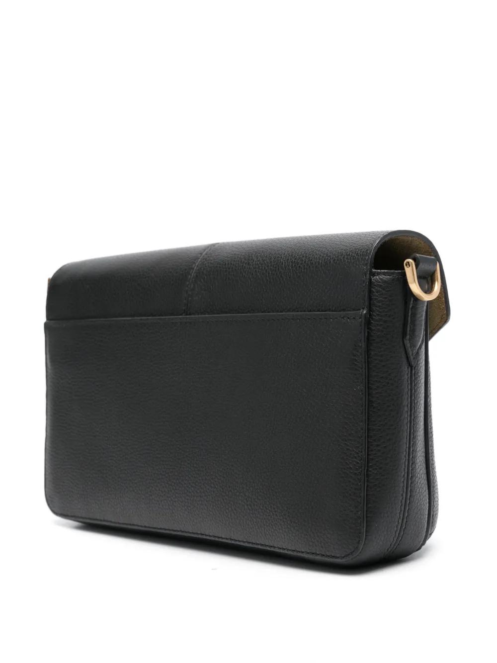 black calf leather grained texture adjustable detachable shoulder strap tonal logo plaque slip pocket to the rear main compartment internal slip pocket internal zip-fastening pocket debossed internal logo full lining logo-engraved gold-tone hardware foldover top with magnetic fastening