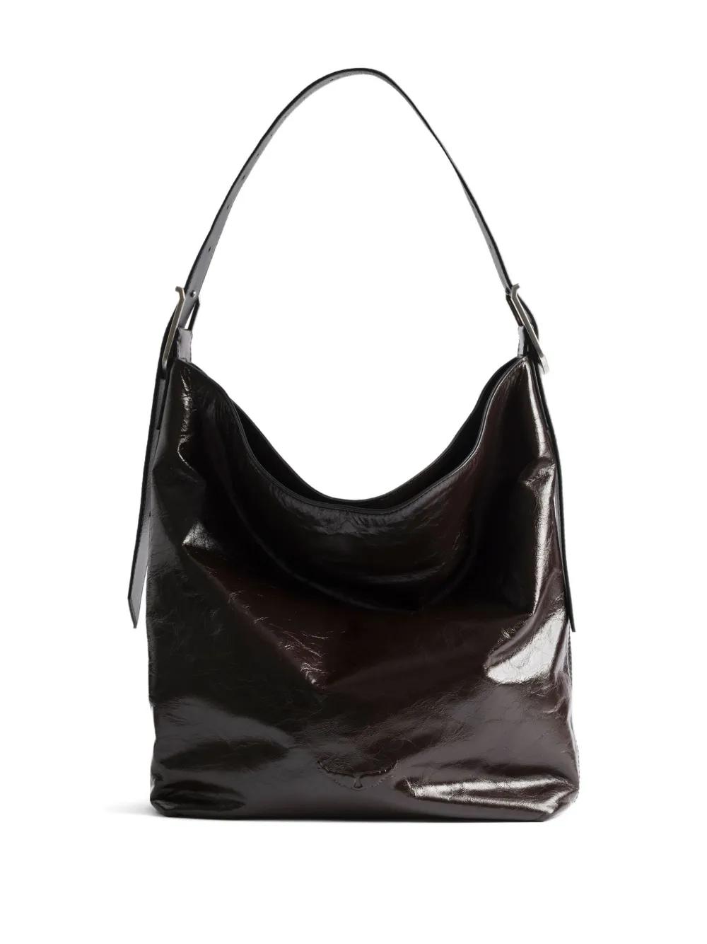 brown bovine leather top handle adjustable strap silver-tone hardware zip fastening