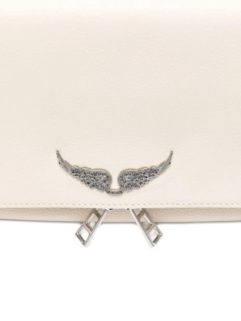 off-white calf leather chain strap zip fastening crystal-embellished wings silver-tone metal hardware